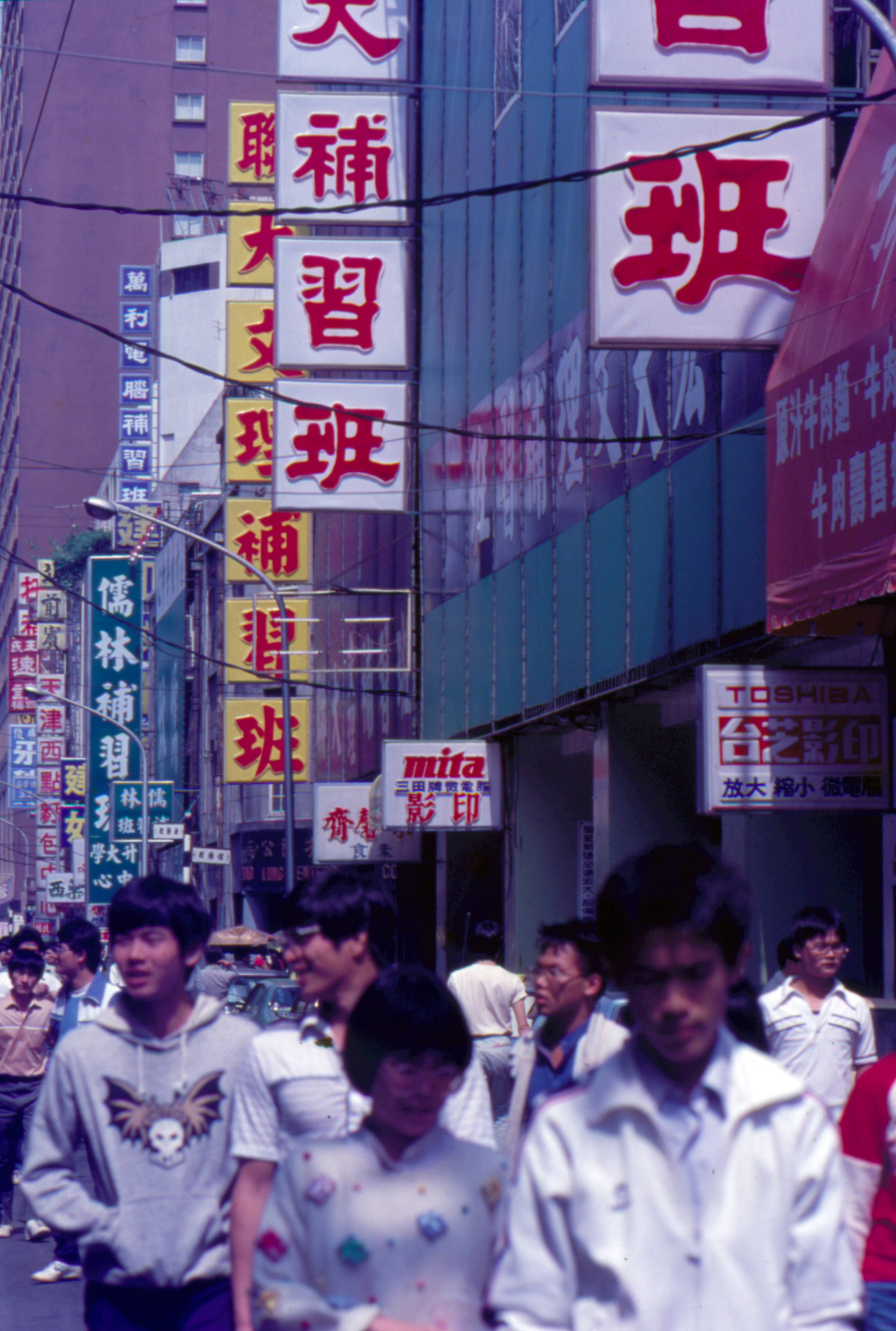白天南陽街的「地盤」屬於升高中、大學的補習班,北一、臺大、學人、聯大、建如……等是其中佼佼者;入夜後,風光就讓留美托福的「美加」給奪了去。