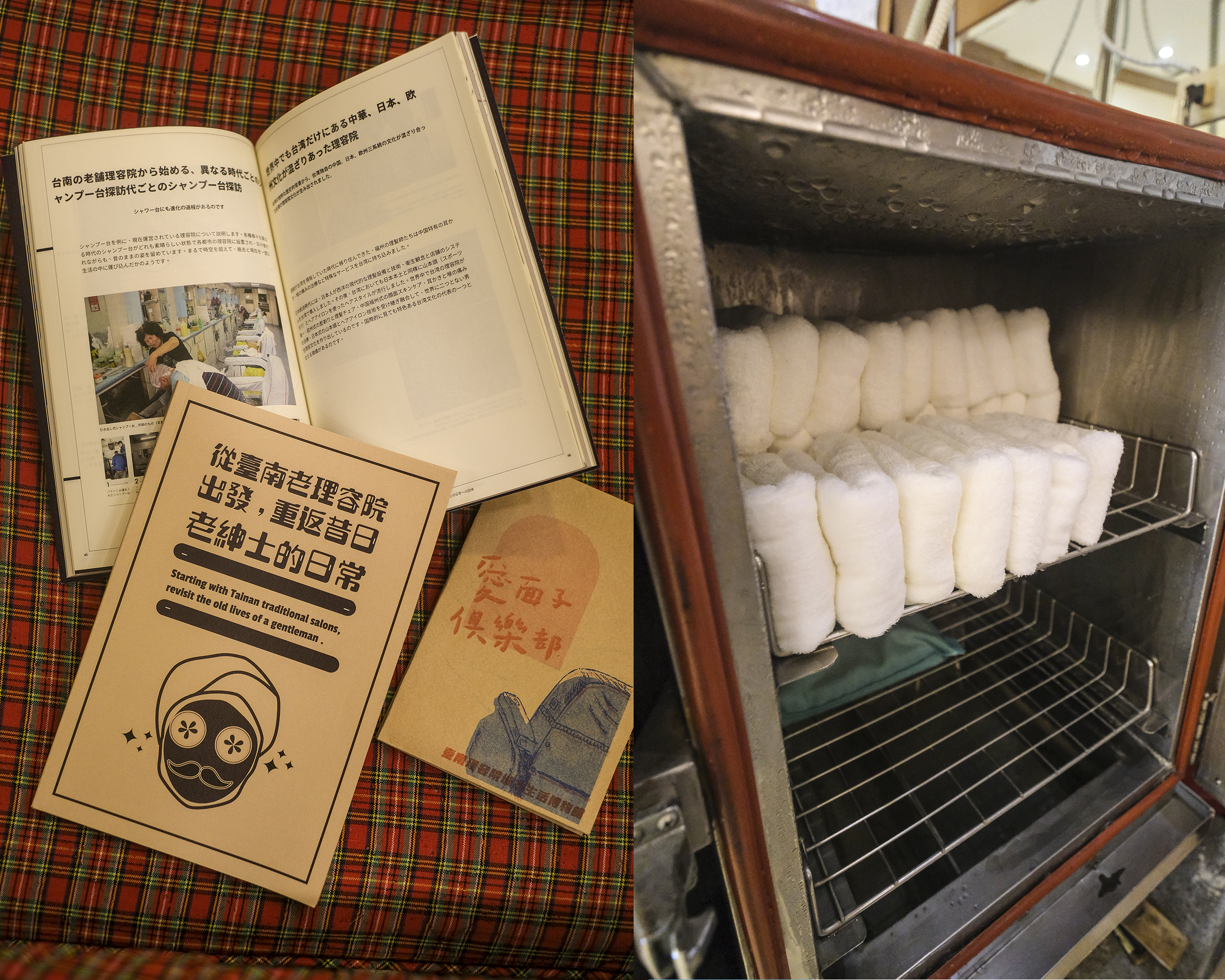 許多師傅的生命經驗是,小學或初中畢業便踏入理髮這行,一做就是一輩子。以曾敬淳的媽媽黃碧霞為例,14歲學理髮,25歲開了華谷理容院,人生大半光陰就在理髮廳裡度過。店內的裝潢、擺設,成了反映師傅興趣的場域,讓每間理髮廳各有特色。曾敬淳笑說,「我媽是個曾經有開咖啡店夢想的人」,所以華谷設有飲料吧台,黃碧霞會用心調製迎賓飲料。喜歡裁縫的曾媽媽,連理髮椅套也都特別訂製,再加上挑高的天井、大理石地板等,都讓華谷顯得氣派非凡。