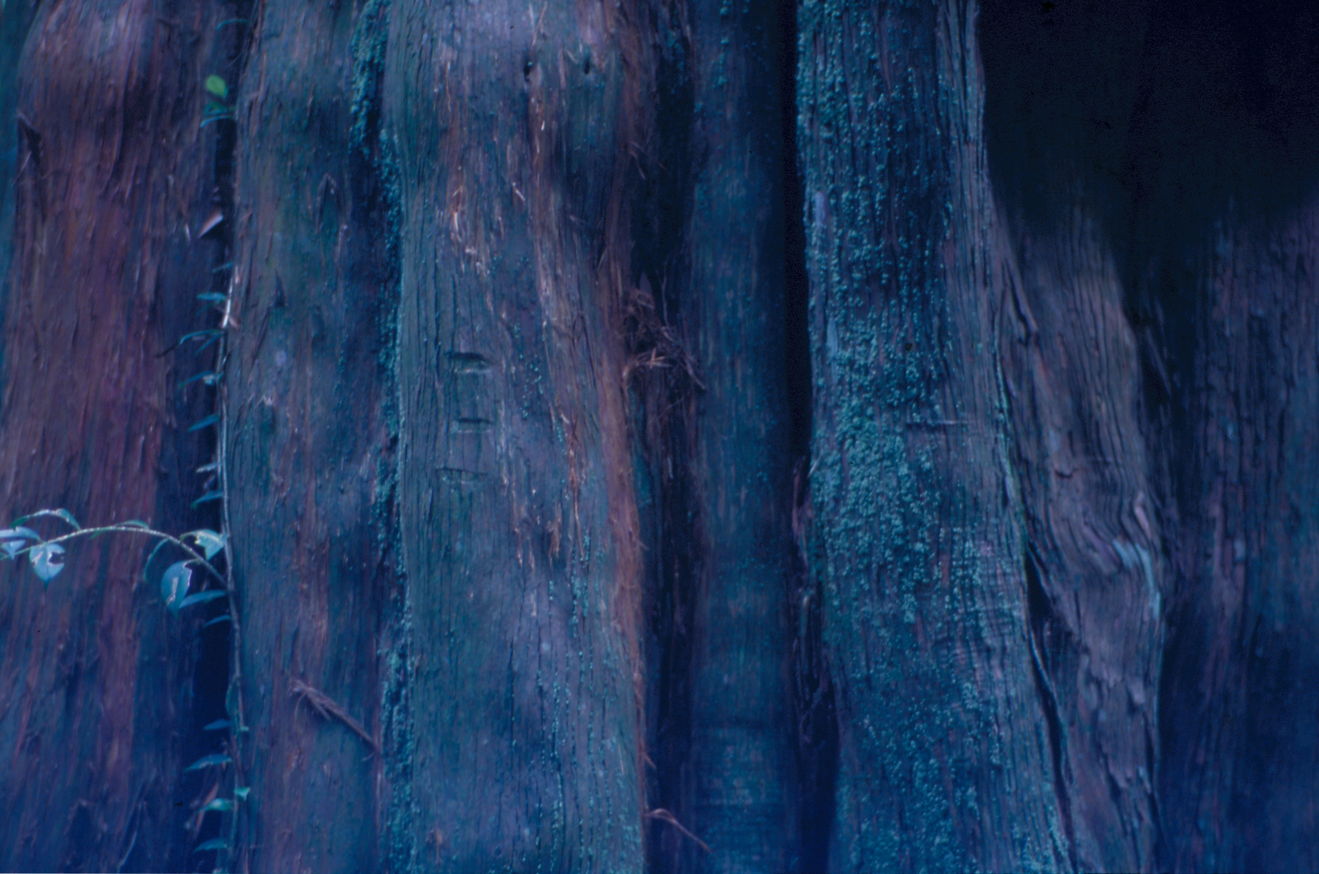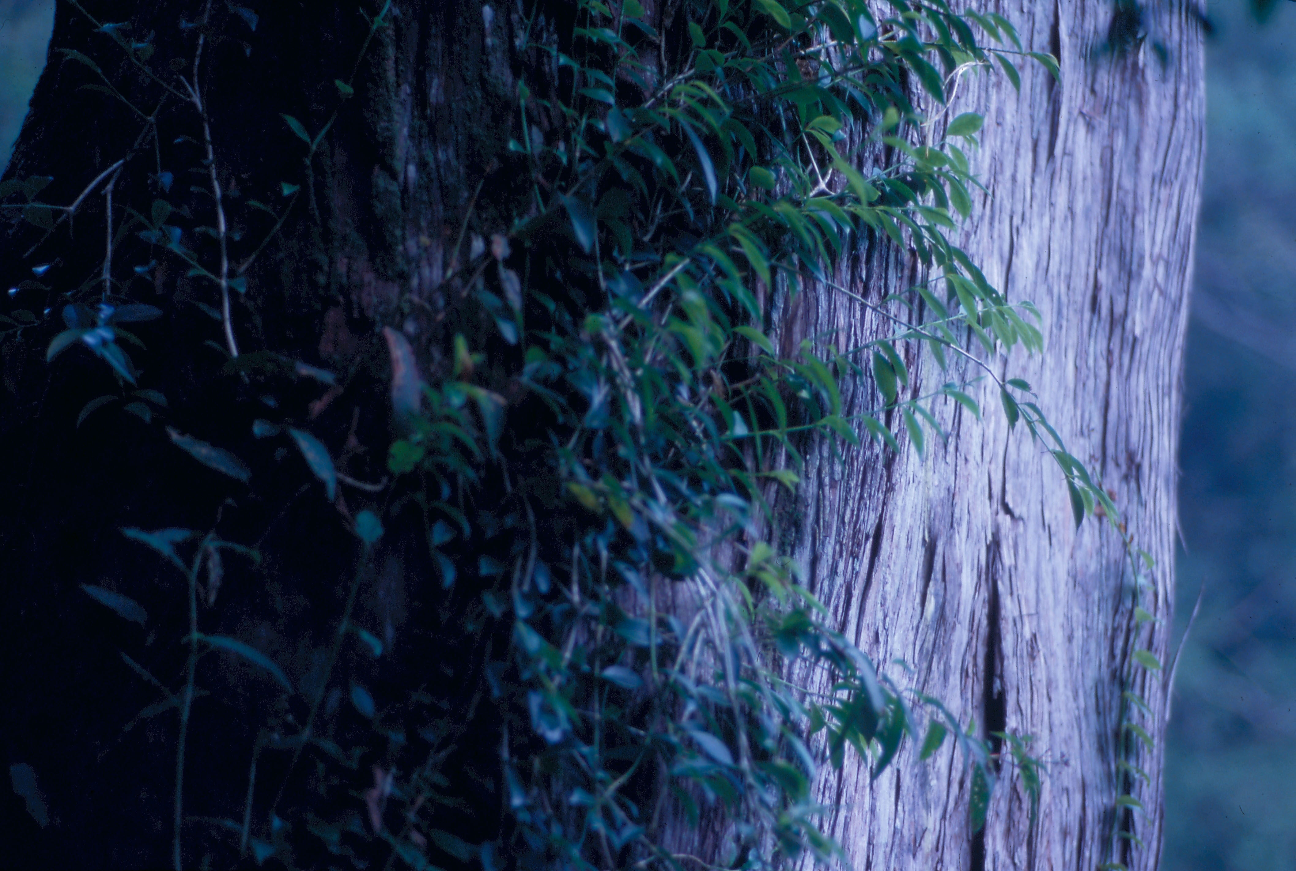 圖2.3:粗大的樹幹上常攀爬著藤蔓植物,每株樹幹於是自成景觀。(鄭元慶)