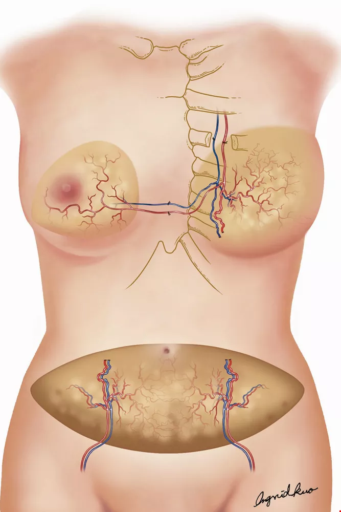 深下腹動脈穿通枝皮瓣手術是將下腹部脂肪和血管移植至胸部。