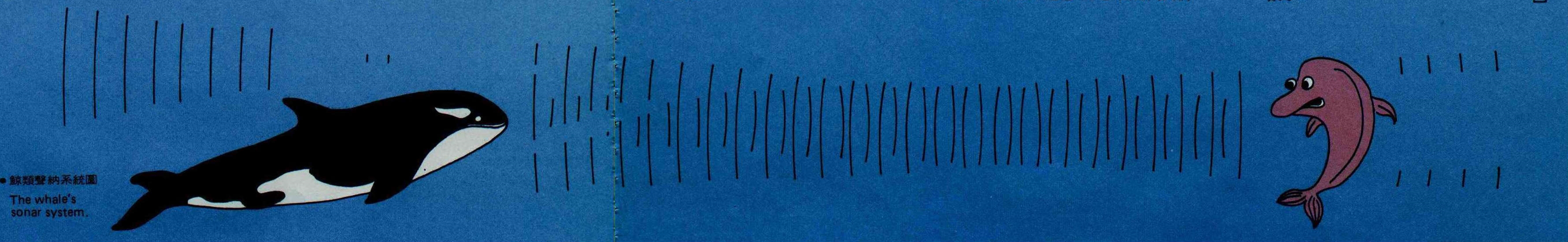 鯨類智商很高,它的「靈魂之窗」就是一套聲納系統,由頭部前端發出音波,依音波反射回來的程度及強弱,判斷前方物體的方位、距離及性質,再據以在水中行進、獵食,猶如蝙蝠用超音波在黑暗中「看」東西。