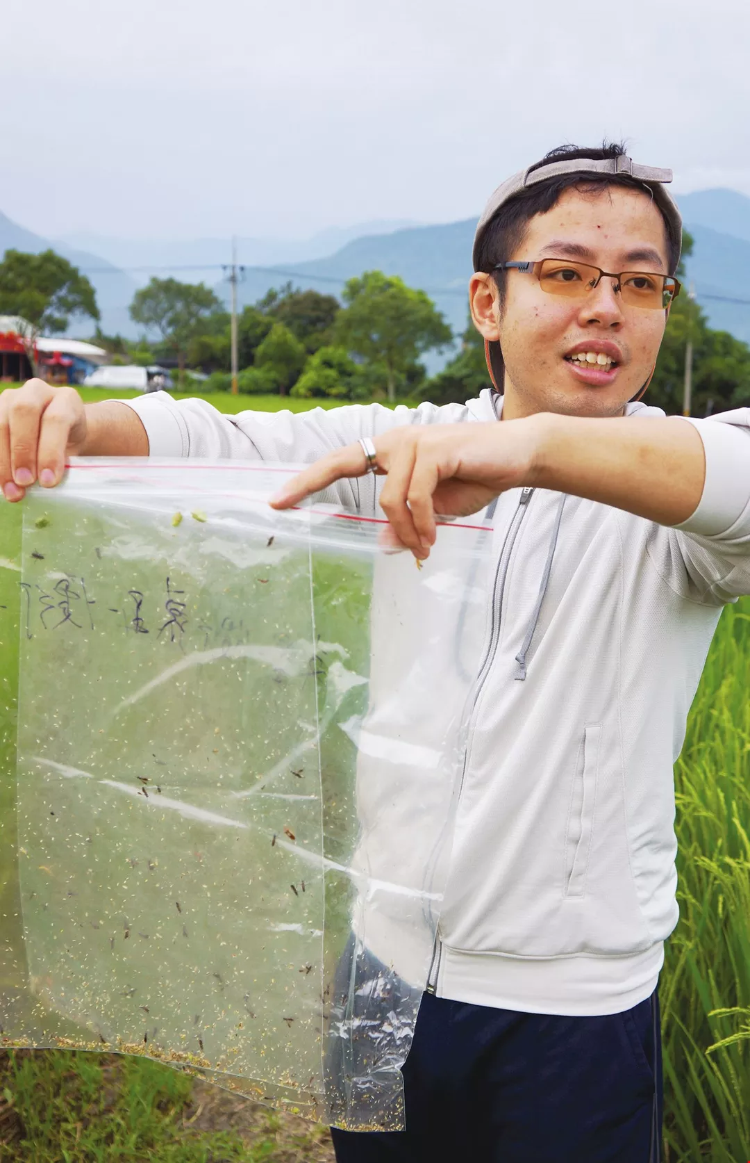 農友觀測的方式也相當簡單,定期在田間以掃網方式數算這兩種昆蟲的數量,只要維持在基礎數量的80%以內,即代表田間生物豐富,稻田健康無虞。