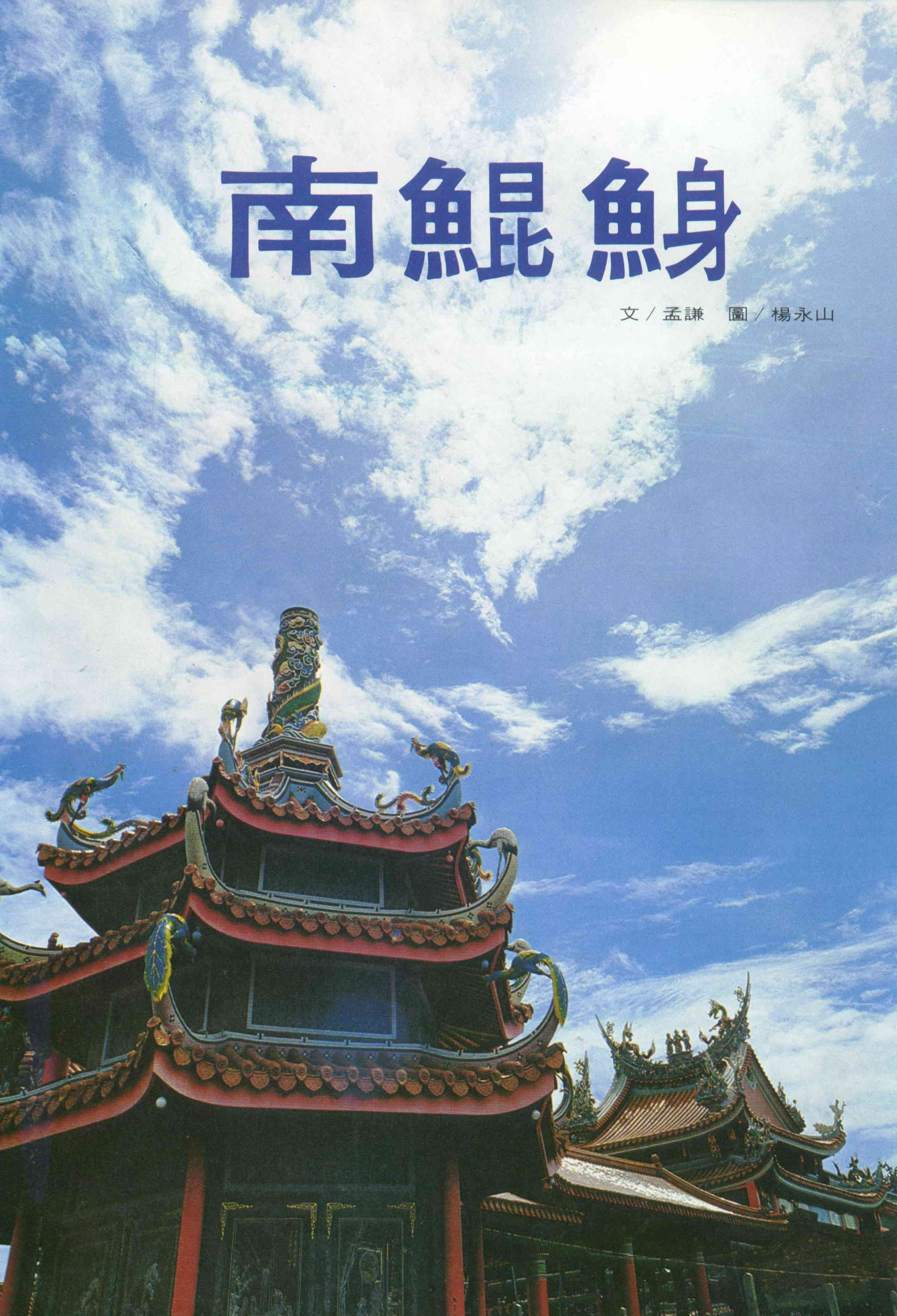 我們在南鯤鯓訪問時,一個「鹽分地帶文藝營」正在那裡舉行,這是由自立晚報社和南鯤鯓廟共同主辦的。這個活動除邀請文藝界人士專題演講、座談,以探討臺灣沿海地帶文學的淵源流變外,並有民俗歌舞表演、書法展、國畫展,及極為罕見的道教神像人物畫展和嗣漢天師府三十六道天師符展。