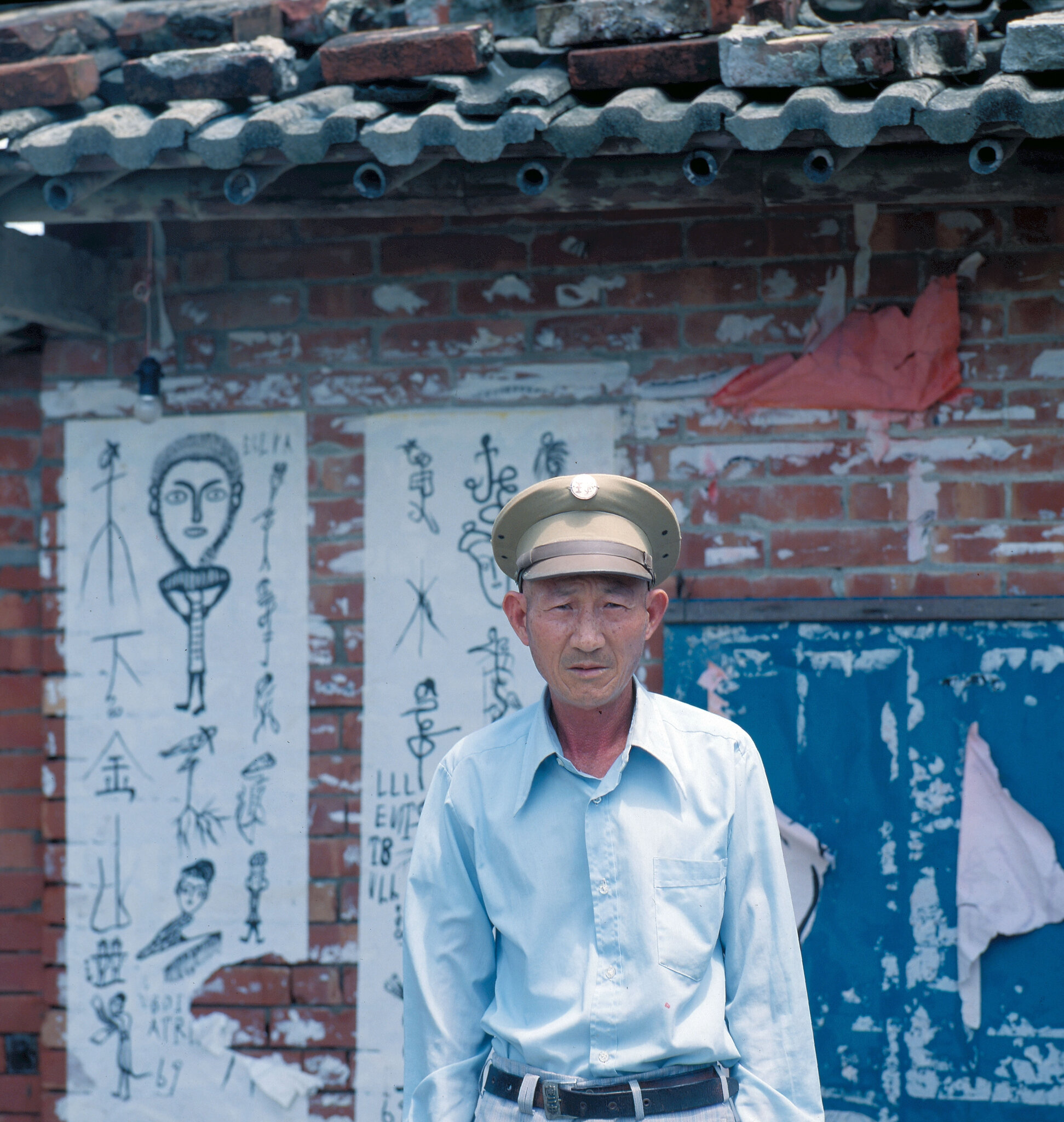住在南鯤鯓廟旁的「鄉土畫家」——洪通,最近突發奇想,買了高中生的帽子和制服,穿戴起來,自稱要開始念書了。