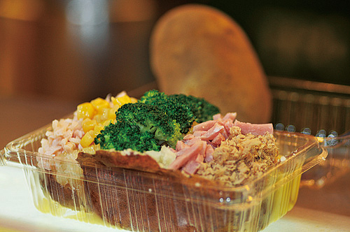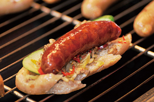 逢甲夜市鄰近大學,消費族群多為年輕人與觀光客,是台灣創新小吃的發明地。下圖為「大腸包小腸」(糯米腸+香腸)與焗烤馬鈴薯。