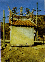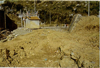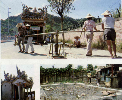 再拿圖中所示的座落在臺北市辛亥隧道山腰上的小土地廟「開興宮」來說吧,四周是一塚塚的墓地,每年除了清明節有一番熱鬧景象以外,平常除了偶爾有人路過避雨,或是特來燒香的,餘下的日子一向很是冷清。