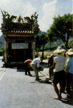 王氏父子三人,父親王罔度,已將自己的一身本領傳給了兩個兒子:哥哥王金度在中部烏日開業,弟弟王金良也在桃園龜山開了一家。老父親認為可以放手讓兒子們去做,已經退休,在家納福了。這次我們見到替小廟大搬家的,便是王金良。