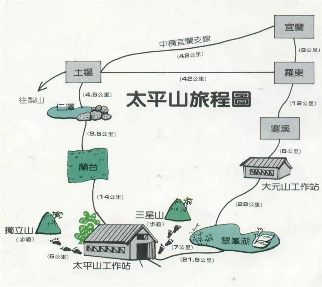 太平山——翠峰湖:需自備交通工具,車程約二小時;步行則約需四小時卅分。