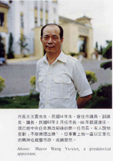 主持高雄市政已達六年的王玉雲市長,使得高雄市在近年來發展神速,對於促成高市的升格,厥功至偉。