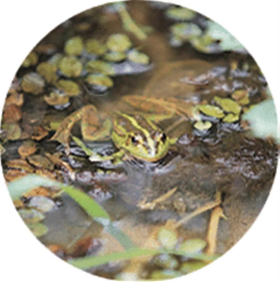 圖左至右為善變蜻蜓、金線蛙、青紋細蟌、猩紅蜻蜓、貢德氏蛙。