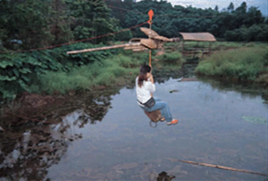 桃米著名的景點「林間藤巷」;不下十餘座竹子打造的「搖搖橋」;竹子、稻草蓋成的「音樂廳」;竹青蛙;濕地上的蜻蜓流籠……,全都是自主營造團隊自行設計、一手採用生態工法打造完成的。「每次來,桃米人都會急於展現新作,而且越做越有心得和信心,」每隔幾星期就造訪一次桃米、被封為「榮譽里民」的廖美華說。