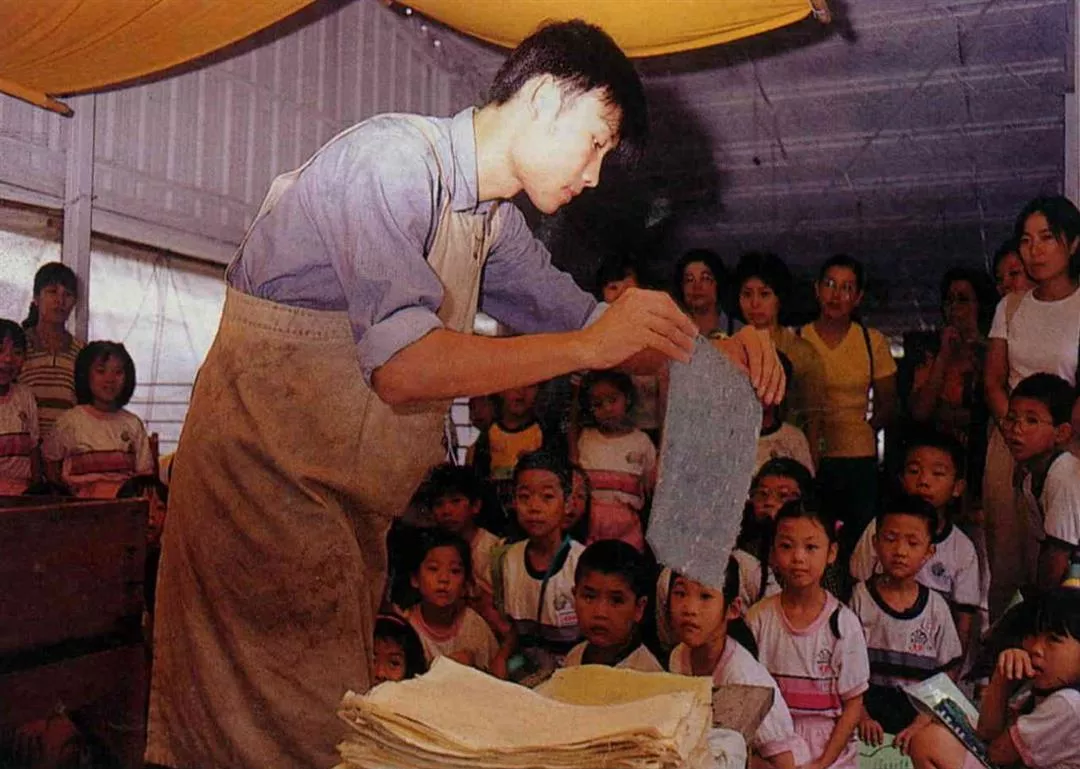 可是,當年輕的解說員領著四抴X位嘰嘰喳喳的小朋友和家長上到頂樓,詳細解說、引導她們親自動手抄出一張利用廢紙製作的再生紙,讓她們了解紙張的來源、製作過程和再生利用的環保意義,趣味之餘,也觸動她的心。