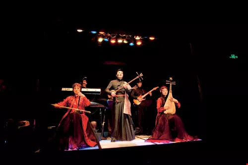 二樓瘦長大廳的琉璃穹頂剔透晶瑩,桌上燭火迷離,氣氛美,音樂佳、菜餚可口,一餐吃下來,眼耳鼻舌身五感都浸泡在美的感動中。令人印象深刻的是餐廳的新民樂演出,由台灣電影配樂大師張弘毅編曲,以中國絲竹融和了電腦Midi音效、爵士節奏,旋律時而古意幽淡、時而熱情酣暢,傳統和現代出入自如,美不勝收,即便價格不斐,一人份600人民幣,也值回票價。