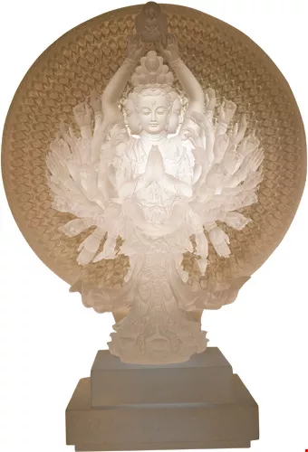 這尊收藏在琉璃博物館的千手千眼觀音琉璃,是楊惠姍為敦煌壁畫而作,她並發下大願要突破現今窯爐限制,做一尊與敦煌等比例大小的琉璃觀音。