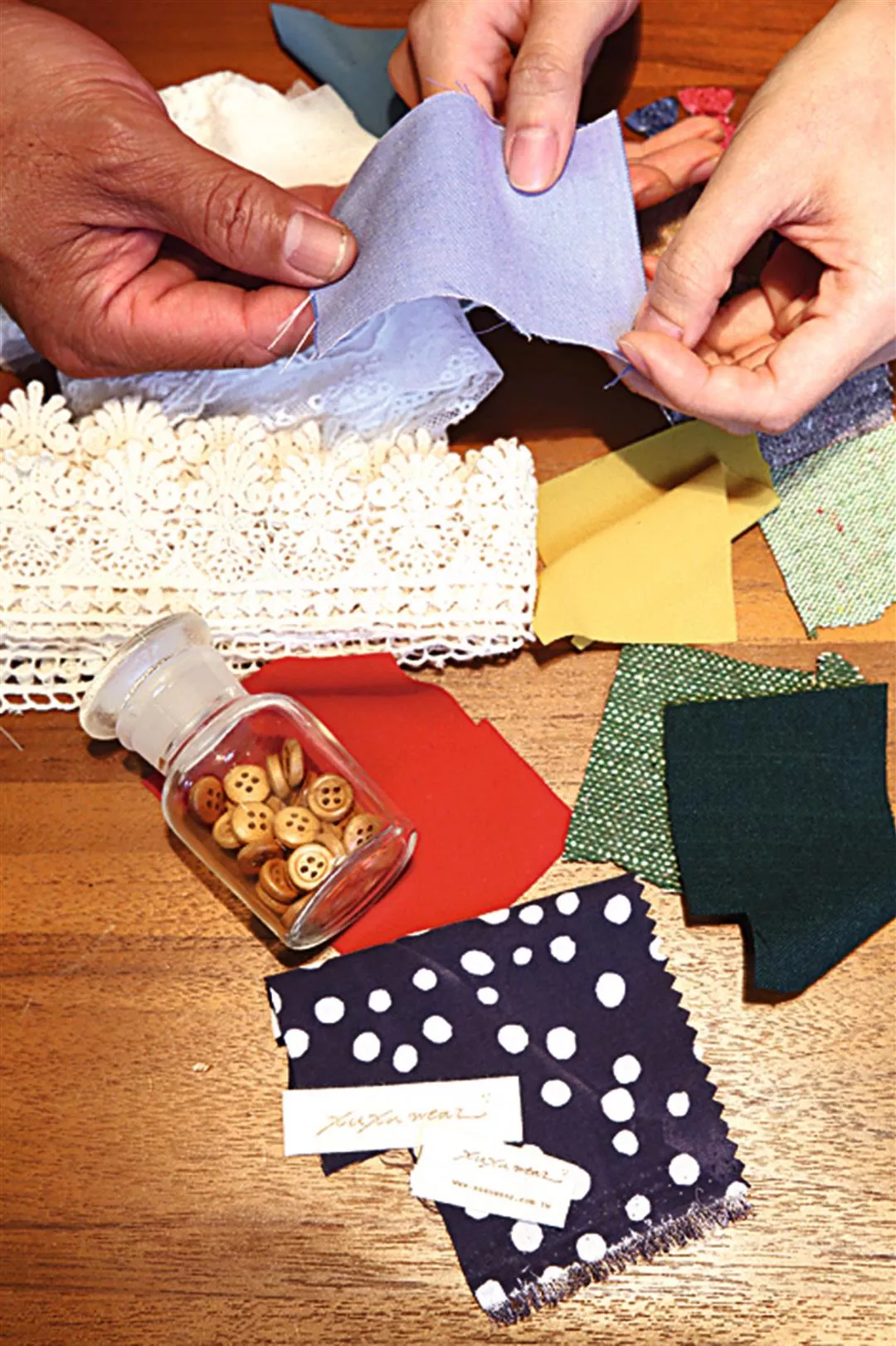 許雅涵說,如果只是為了衝高營業額而一味大量製造,就沒意思了。她希望許許兒重質更勝於重量,重觀念推廣而不流行跟風。所以,店內還掛著反核電廠旗幟,宣揚環保理念;她甚至連製衣剩下的「邊角布」都不浪費,拿來製作小飾品,贈送給消費者。