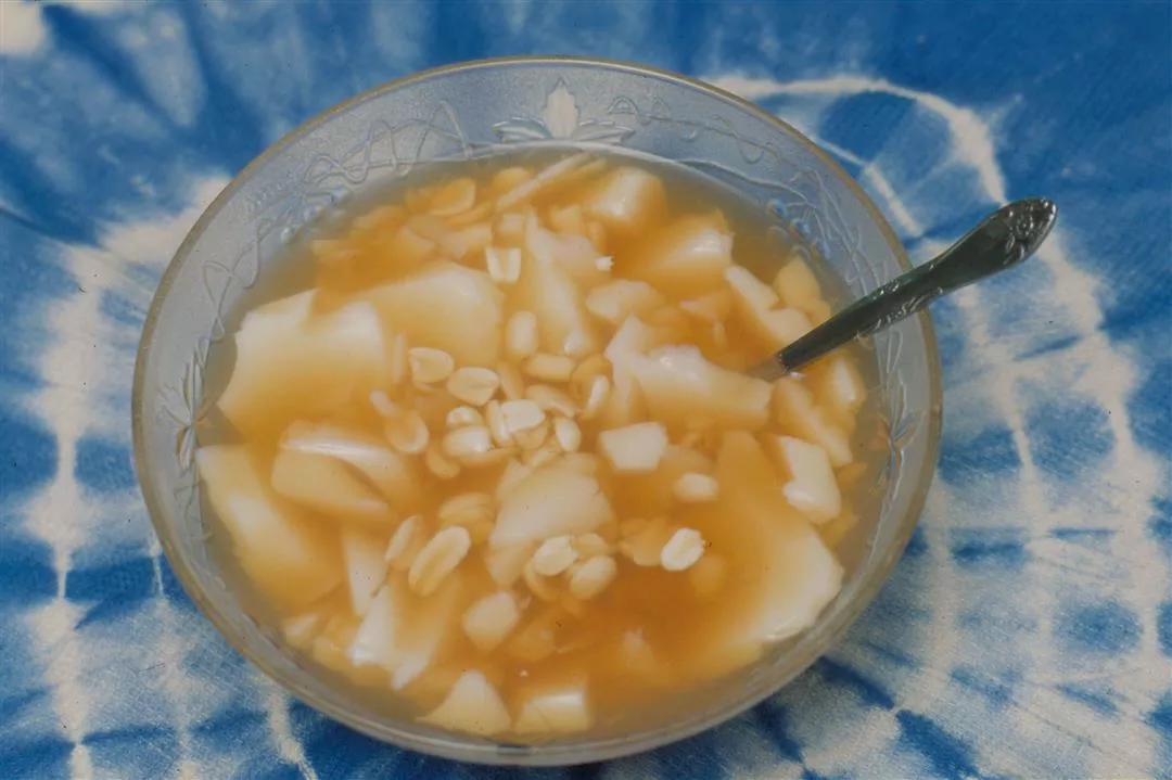 冰涼的豆花,加上一點花生和甜湯,極為清涼可口。(歐陽芷汀/傅培梅提供)