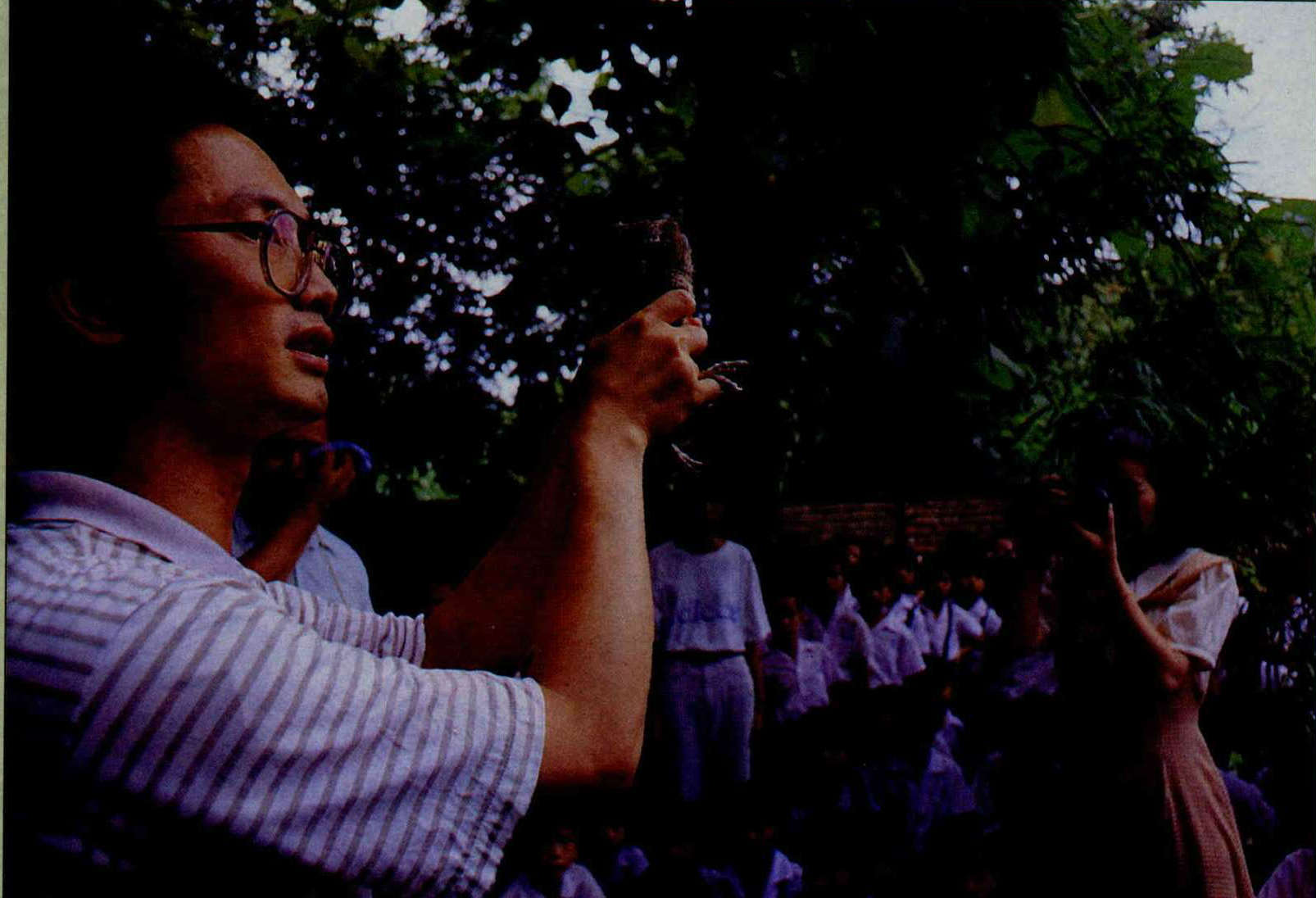 「小朋友,你們看這隻領角鴞的眼睛和一般小鳥的有什麼不同呢?」獸醫林世賢對著二百四十多名小學生說:「對了,鳥的眼睛在不同平面上,而領角鴞的眼睛和你們的眼睛一樣,是在同一個平面上……」