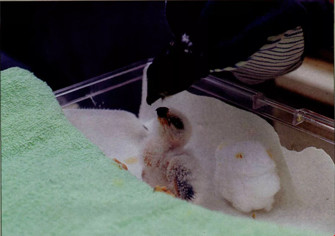 雛鳥在急救站暫時住幾天,祁醫師每天的例行工作就是為他量體重、嘴長、腳長等。(張良綱)