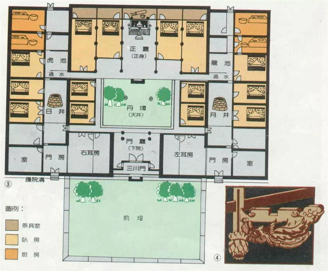 圖3.:由古厝平面圖可以看出,這是一座配置勻齊的典型四合院建築。(楊永山/李乾朗)