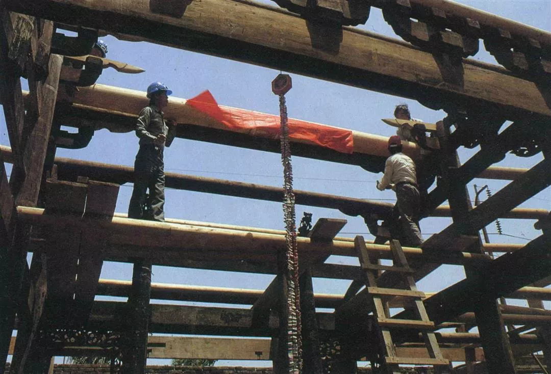 臺基、柱樑門窗、屋頂,是傳統建築的三個主要部分,施工也依此順序。