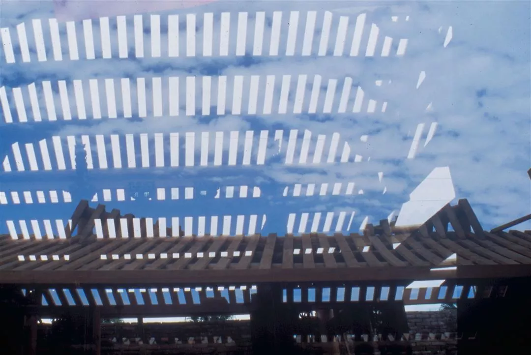 穿梭在安泰古厝猶未舖瓦的樑柱之間,白花花的陽光打在烏沈沈的老柱上,寫出一種躍躍欲出的生意來。