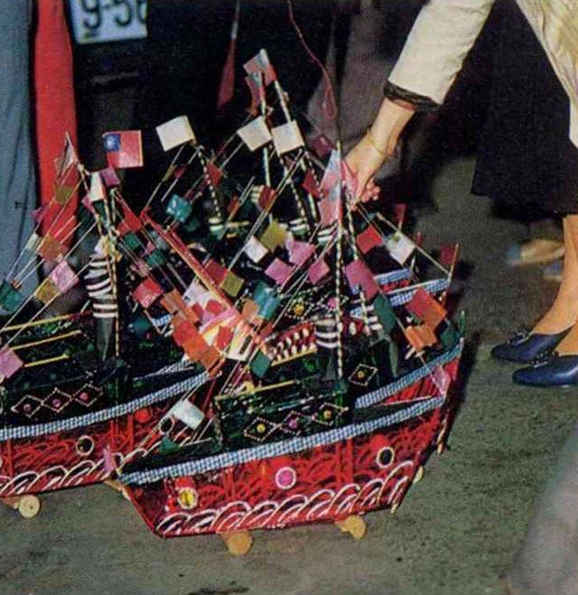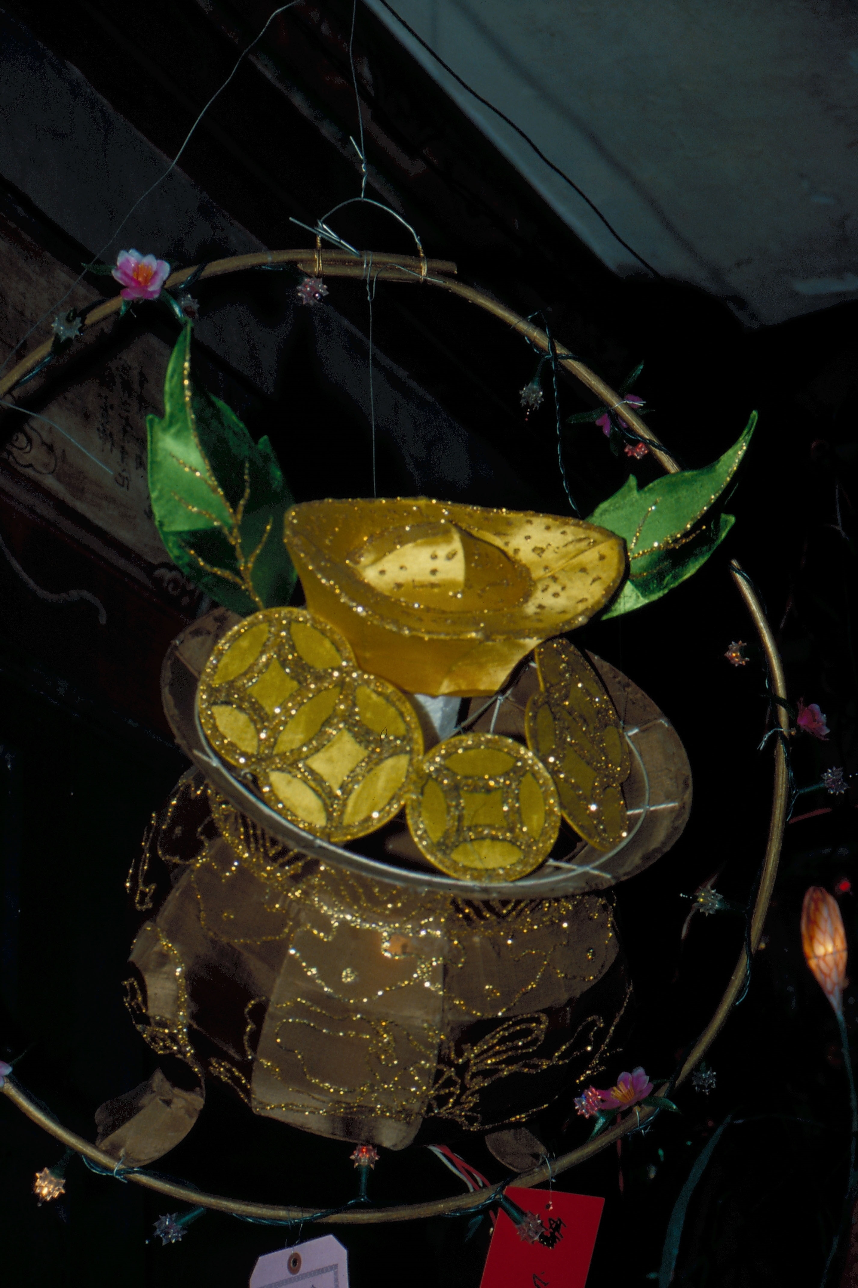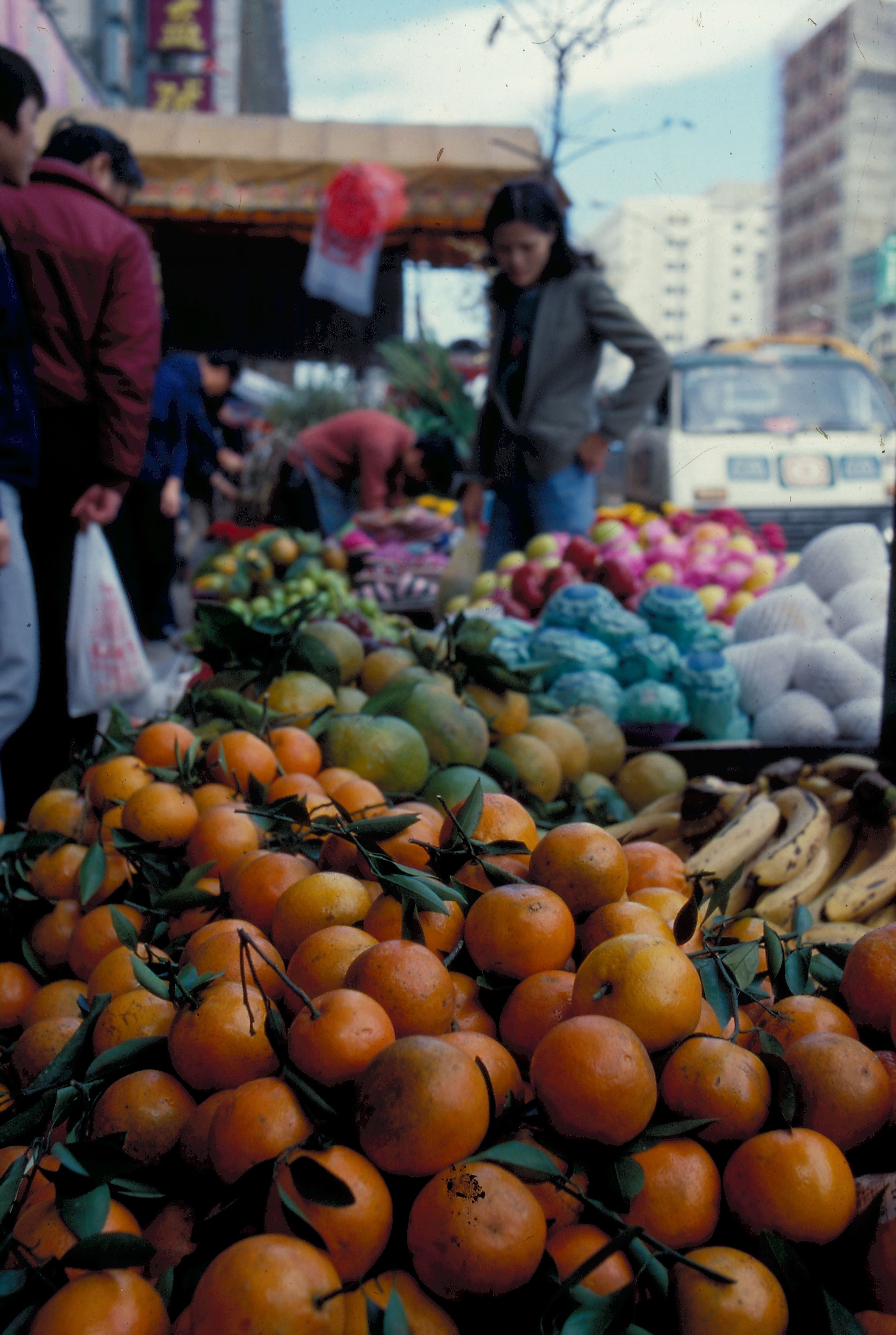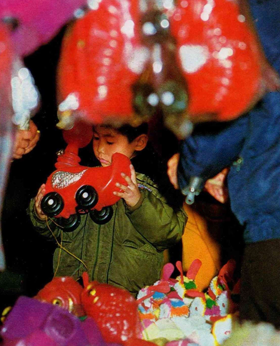 林林總總的攤販,是大眾最歡迎的。有賣衣飾的、有賣鞋襪的、有賣水果的、有賣花卉的、有賣雞鴨魚肉和燒臘鹵味的、有賣春聯的、有賣玩具的,五彩繽紛,應有盡有。由於是不必付店租的小本經營,價錢比百貨公司內便宜三成左右;加上大家多半領了年終獎金,又逢一年一度的農曆新年,一般消費大眾花錢來得爽快,許多「不急之物」,因為心裡開心,荷包充實,就大包小包地都抱回家去。於是街上人群摩肩擦踵,攤販多,顧客更多,在擁擠的人群與吆喝叫賣聲中,自有一種消費的樂趣,與民生富裕的欣慰。