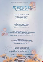 二十六歲的菲籍女監護工Estrella DeCastro在詩文比賽的第二名詩作<外傭淚>中寫著:
