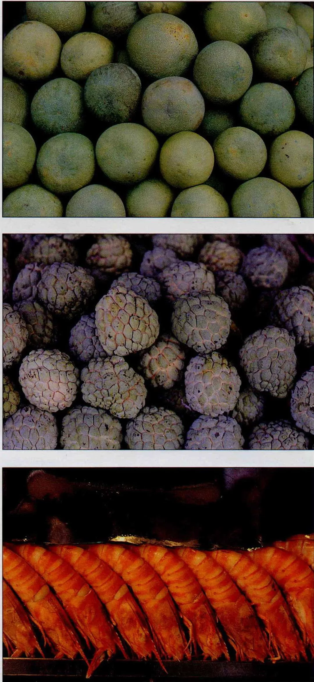 (左.右)秋高氣爽,鮮果當令。在台東市區有名的夜市,可吃到美味的柚子、釋迦和海產。(倪淑雲攝)