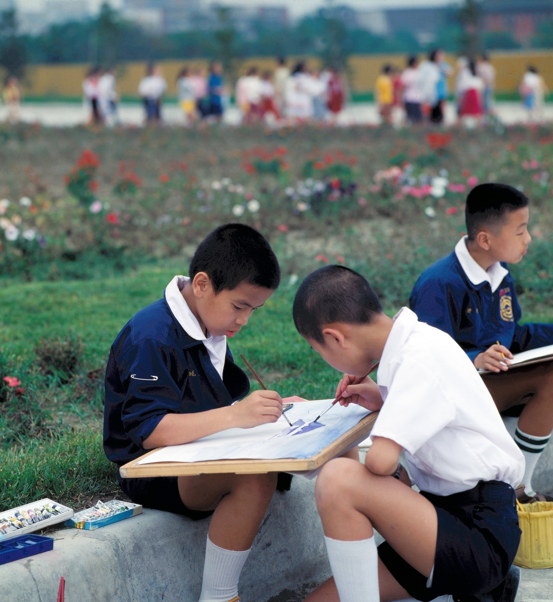 用功的學生,一早便帶了課本,來公園裏默書、記英文單字。新鮮的空氣,怡人的景緻,往往使得讀書效果特別好。