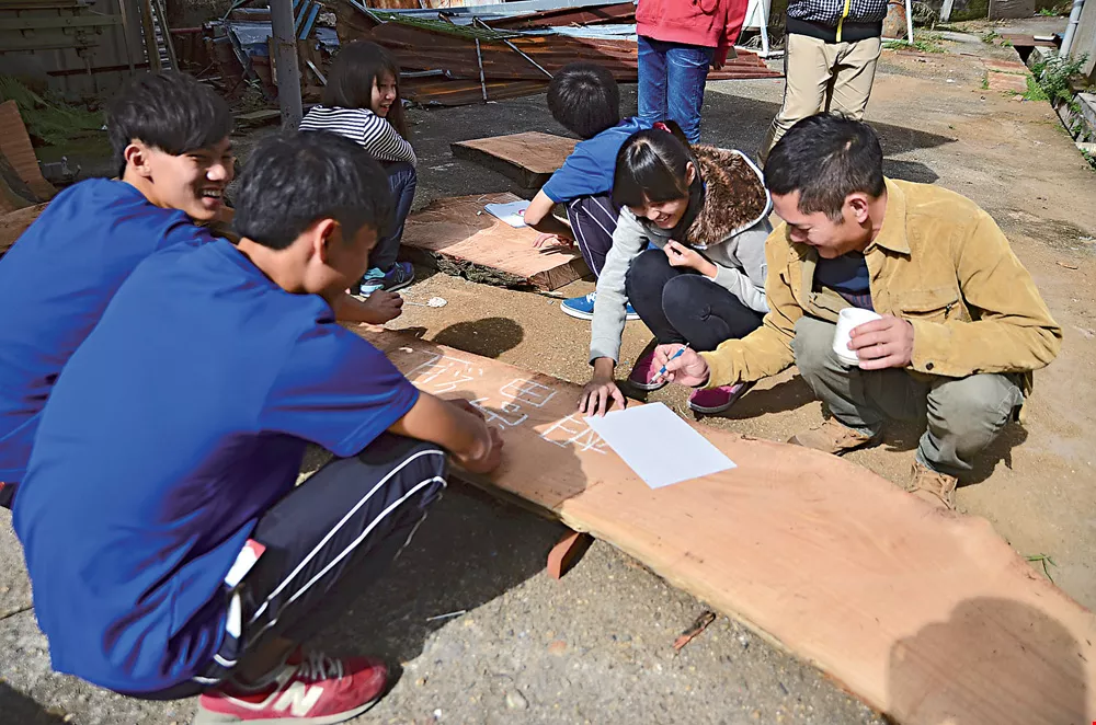 「台灣好基金會」用在地的人才、資源以及特色,創造無限的機會。圖為拉黑子老師帶領公東高工學生利用漂流木設計家具,化腐朽為神奇,並將作品擺置在鐵花村文創產品區展售。