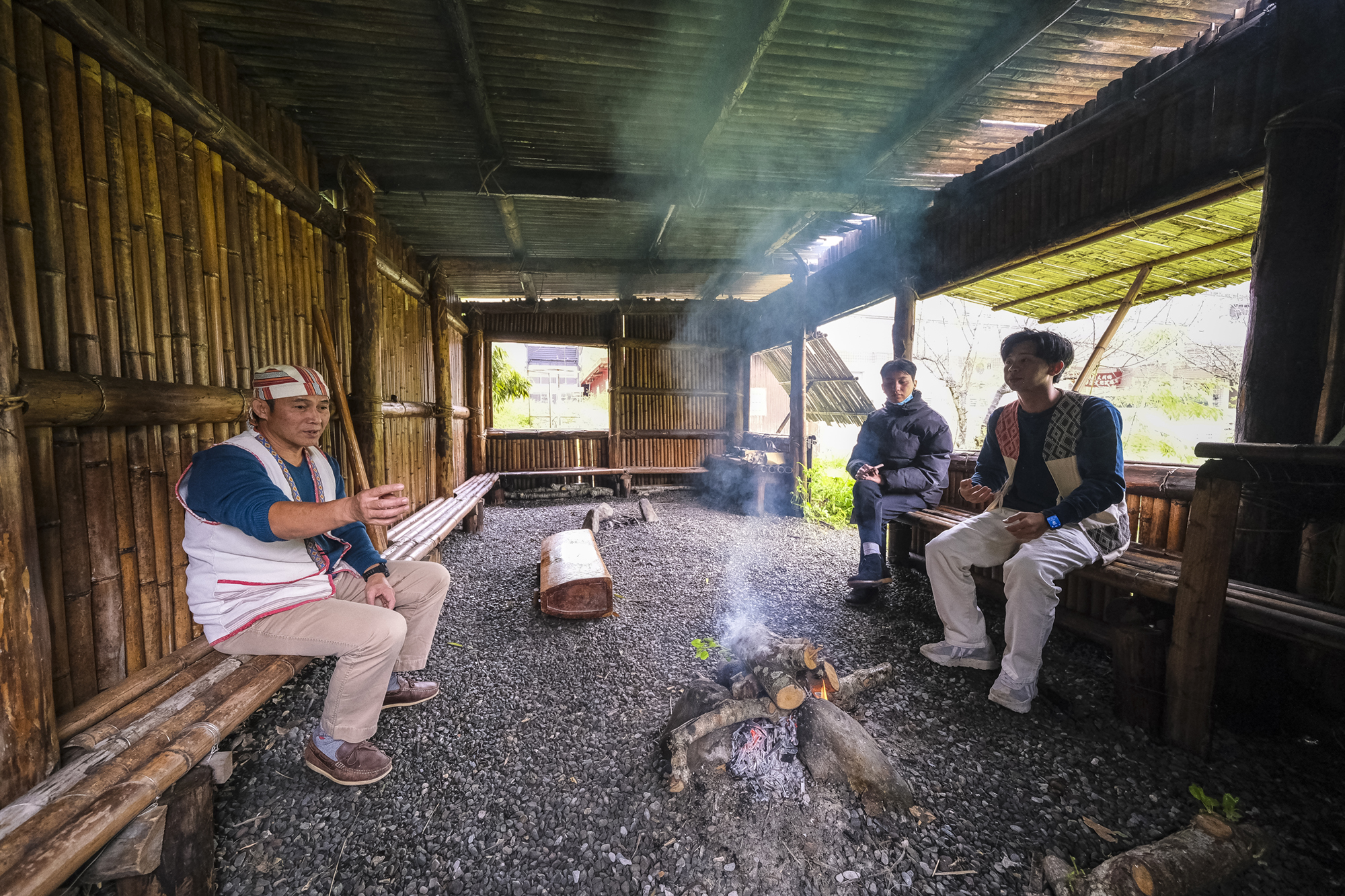 竹製的烤火屋是部落長輩帶著青年們共同製作的集體智慧,蘊含了三種工法,第一種是將竹子剖半後,以陰陽交疊的方式拼接,作為牆身可擋風,用於屋頂可排水;第二種則是將竹子打裂後攤平,再以竹片固定,製作窗戶,可讓水匯流在竹片溝槽,待收起窗戶時水才會滴落;第三種則是用完整竹子拼接而成的桌椅。族人每日會來生火,保持屋子的乾燥,能預防蛀蟲和發霉。火亦是部落生活的重要象徵,黃天金解釋,以前族人居住的範圍比較分散,若一大早有煙升起,表示這個家戶平安在吃飯,如果兩三天沒看到炊煙,族人就會擔心地前去探望。火不僅是生存的必需,也是彼此間報平安的信號。
