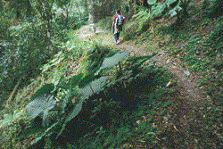 走在檜木林帶步道上,雖然無緣一見整片檜木林,但當陡壁上碩大挺直的檜木出現時,不禁令人聯想起上一個世紀台灣檜木的災難史。