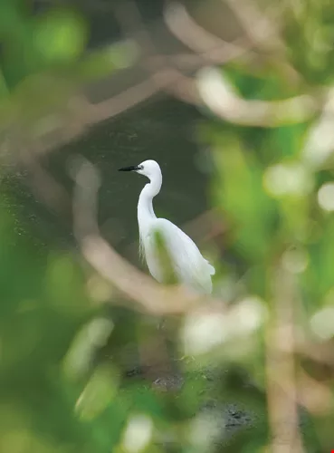 小白鷺;搭乘工作船遊台南四草保護區,可飽攬水上養蚵風情、兩岸紅樹林生態,還可到賞鳥亭欣賞四草的豐富鳥況。