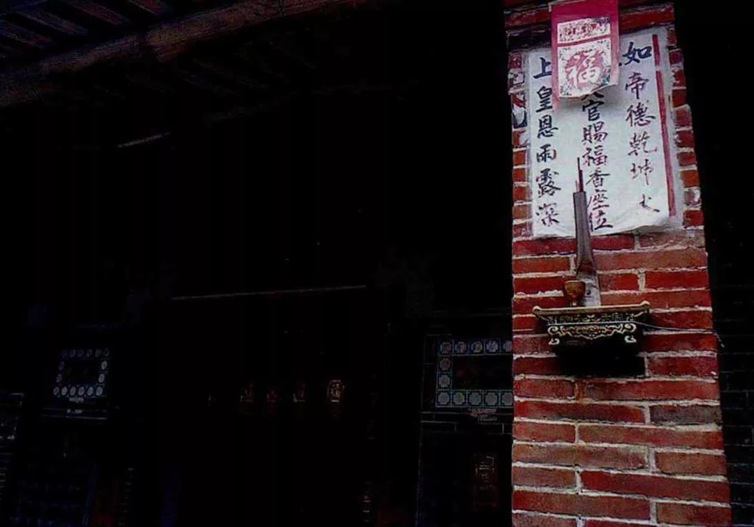 除了正廳門上的堂號外,兩旁貼著的「楹對」是這個宗族幾百年來謹遵的族訓,古德福家寫的是「系出三皇上」、「基開百粵先」。