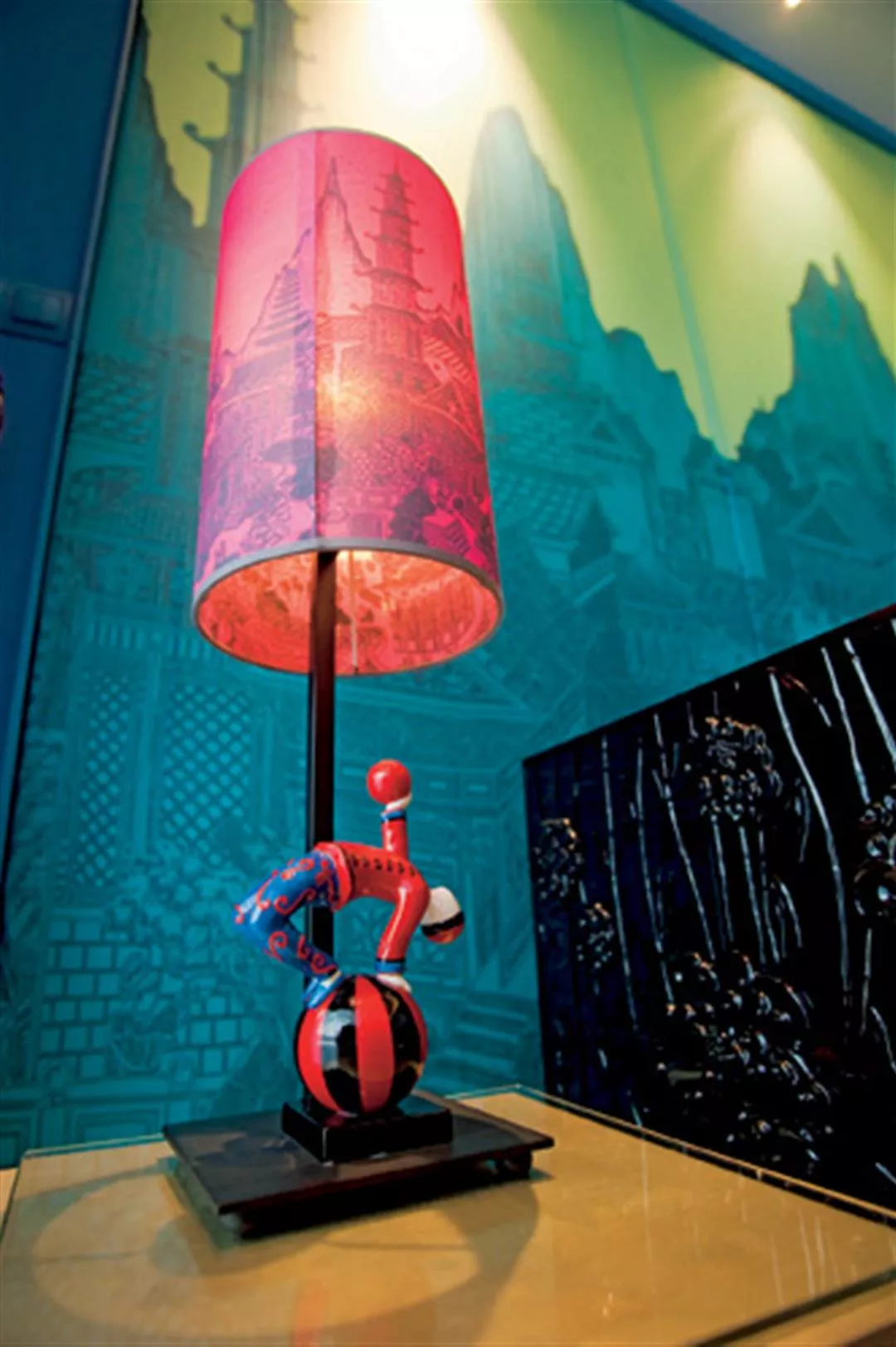 法藍瓷和杭州黃龍酒店異業結盟,高檔套房以法藍瓷的家具副品牌如燈飾、家具為裝潢擺設,顏色大膽鮮豔的「東方印象」房間,華麗浪漫。