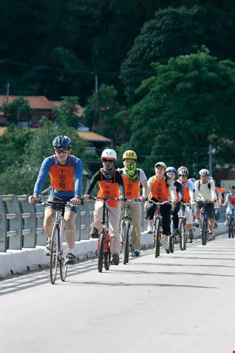 每個人、每個社區都是一個單點,而千里步道就是要將點與點、人與社區連接起來。(右一)新竹內灣郊外的天人岩屋,是4天3夜「北桃竹苗」騎行遊的中繼站。