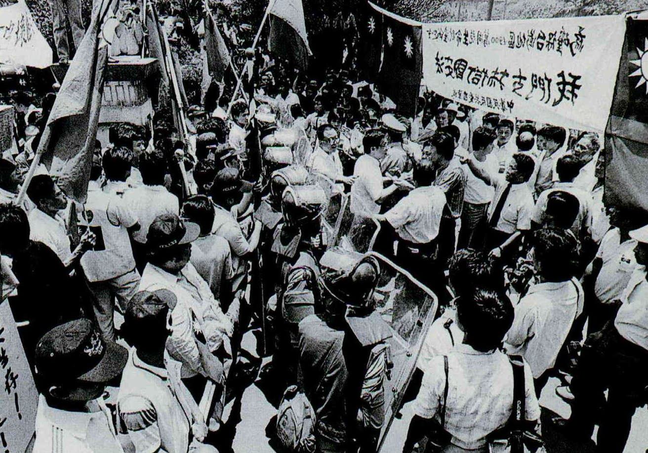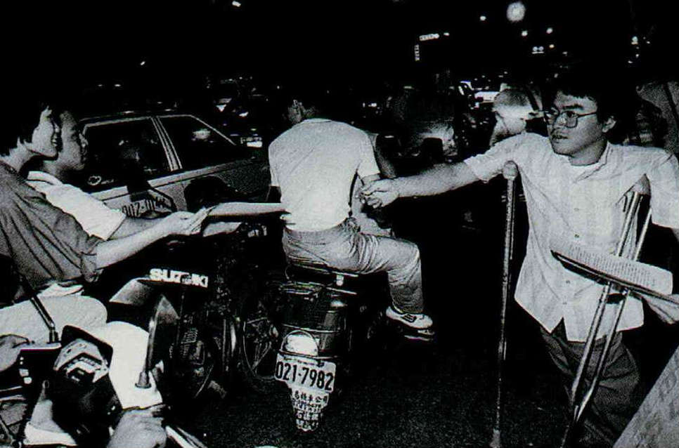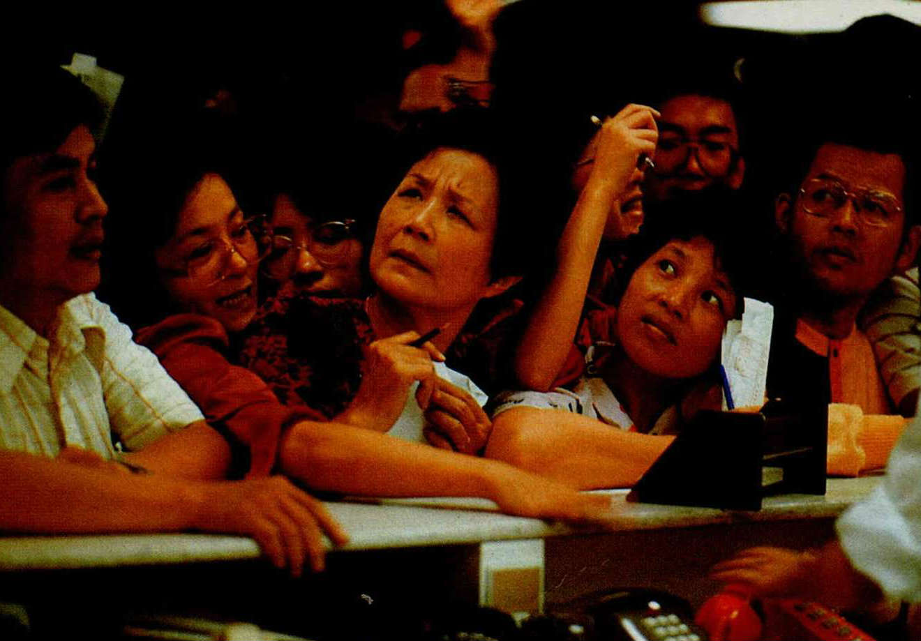 七六年新聞光影 文‧陳雅玲 1987 12月 EN 分享: 國慶閱兵大典上,蔣總統抬頭檢視空軍,參謀總長郝柏村於一旁解說。/10月11日/湖口/中國時報姚琢奇。 今年我國行政院長俞國華首度訪問新加坡,與該國總理李光耀晤談甚歡。/6月9日/新加坡/新聞局李培徽。 身為一本畫報雜誌,光華一直以拍攝好的新聞圖片為目標;這個月,我們更嘗試以圖片來回顧今年的重大新聞事件,並將國內的新聞攝影介紹給讀者。經過三個月的策劃,在近千張的應徵作品中,我們精挑了這五十張分別代表政治、經濟、社會、體育、環保、醫藥、教育等範疇的佳作,與您分享。 新聞局長邵玉銘向記者們宣佈:中華民國正式解嚴。/7月14日/台北市/光華雜誌張良綱。在國防部舉辦的記者會上,反共義士劉志遠展示他隨身攜帶的手槍。/11月19日/台北市/光華雜誌邱勝旺。大陸探親開放後,思鄉情切的民眾紛紛趕赴紅十字會填申請表。/10月24日/台北市/中國時報李衛民。贊成與反對解嚴後制訂國安法的人,於立法院前相持不下。警察人員在中間堵成一道人牆,以免雙方發生衝突。/6月12日/台北市/楊永智立法院裏立委朱高正搶著發言;他口沫橫飛,立委張鴻學只得以手「擋雨」。/11月6日/台北市/聯合報林建榮。立法院舉行經費稽核委員會委員選舉,資深立委吉佑民由助理扶持前來投票。/5月1日/台北市/聯合報陳曙光。中華成棒奪得奧運代表權的慶功宴上,棒協理事長唐盼盼帶頭以冠軍杯喝酒慶祝。/8月31日/日本東京/時報週刊吳恭銘。今年十月剛滿十四歲的王思婷,是我國最被看好的網壇明星。/4月11日/台北市/民生報林明源。朱志清是國內今年剛崛起的籃壇新秀,在美國金山明星隊來台的友誼賽上,他被「卡位」了。/10月21日/台北市/民生報林明源。在中、韓、菲青年籃賽中,鄭志龍成為我國籃球史上第一個拉破籃板的人。/1月9日/高雄市/時報週刊吳恭銘。大專杯橄欖球賽上,成大橄欖球隊長劉俊寬在意外中被踢成植物人,後來不幸去世。/4月30日/台北市/中國時報李衛民。票據法刑責取消後,受刑人終於可以回家享受天倫。/7月1日/桃園龜山監獄/經濟日報張義宮。在「號子」裏,投資人緊張地觀看電腦螢幕,搶著買進賣出。/10月16日/台北鼎康證券行/光華雜誌邱勝旺。由於所生產的鋁箔包飲料被歹徒勒索下毒,統一企業為維護商譽及保障消費者,將全省七十二萬包鋁箔包飲料全部收回銷毀。/10月24日/台南縣/光華雜誌張良綱。洋菸開放進口後,國內香菸市場一時競爭激烈。經銷商為攻佔市場,經常舉辦展示活動,請民眾試抽。/6月13日/高雄市/台灣新聞報李建輝。為了拆除高屏溪違法魚塭,一大早屏東縣警察即來佈陣。/9月17日/屏東縣/光華雜誌鄭元慶。雙園大橋下,大怪手即將對違法魚塭下手。/9月17日/屏東縣/路加。新店垃圾山曝光後,環保人員前來探測附近水質。/7月10日/新店市/突破雜誌黃子明。李長榮化工廠造成汙染後,附近居民都到鄰村取水飲用。/4月/新竹市/人間雜誌蔡明德。在台大醫院舉辦的記者招待會上,國內第一位換心成功的病人宋國山談笑風生。/9月17日/台北市/中國時報蕭嘉慶。一再抗議無效,當地人只得用石塊堵住李長榮大門,並紮起帳蓬「長期抗戰」。/(同左)我國第一位「面對」世人的愛滋病患者。/6月26日/台北市/中國時報蕭嘉慶。籌劃十二年,各項設備達到世界最高標準的國家戲劇院與音樂廳,已在今年十月正式開幕啟用。/8月25日/台北市/國華廣告公司李國村。九十高齡的黃君璧有感於國內「有錢人多,但愛心少」,特別義賣一百幅畫,將所得捐給老人與孤兒。在記者會上,說到孤苦無依的老人,他忍不住清淚漣漣。/10月21日/台北市/民生報游輝弘。由於「英雄本色」、「報告班長」及「倩女幽魂」的叫好叫座,今年電影界遂「三窩蜂」地趕拍英雄片、軍教片及鬼片。三圖分別是「江湖情」、「大地勇士」及「倩女幽魂」劇照。由於「英雄本色」、「報告班長」及「倩女幽魂」的叫好叫座,今年電影界遂「三窩蜂」地趕拍英雄片、軍教片及鬼片。三圖分別是「江湖情」、「大地勇士」及「倩女幽魂」劇照。由於「英雄本色」、「報告班長」及「倩女幽魂」的叫好叫座,今年電影界遂「三窩蜂」地趕拍英雄片、軍教片及鬼片。三圖分別是「江湖情」、「大地勇士」及「倩女幽魂」劇照。佛光山佛學院第一屆學生畢業典禮上,和尚正為貴賓抹拭座椅。/9月13日/高雄市/光華雜誌邱勝旺。今年台塑員工運動大會上,七十一高齡的王永慶兩肩各擔十五公斤沙包參加一百公尺賽跑。/3月29日/泰山鄉明志工專/經濟日報張義宮。大同公司火災,濃煙蔽天,消防隊員只好趴在屋頂上救火。/2月20日/台北市/光華雜誌邱勝旺。數百名六福大樓火災受困的民眾,在濃煙中沿著雲梯魚貫而下。/7月12日/台北市/中央日報林錫銘。新店溪直潭壩在琳恩颱風過後,攔下了近一百五十噸的垃圾。/10月24日/台北縣/民生報游輝弘。滿天飛舞的不是彩紙,而是被鞭炮引爆的氫氣球碎片與火光;這個意外造成人員受傷,卻在相紙上構成這幅絢麗的圖像。/10月26日/台北市/光華雜誌張良綱。大家樂賭風今年吹到了台北,為求明牌,夜來賭徒點燭看沙盤。/10月9日/台北市/光華雜誌張良綱飆車風盛,機車飾物店也跟著大發利市。/9月/台北市/中國時報林國彰。在大度路的起跑點上,玩命少年等著大旗揮開,一路衝去。/8月13日/台北市/新