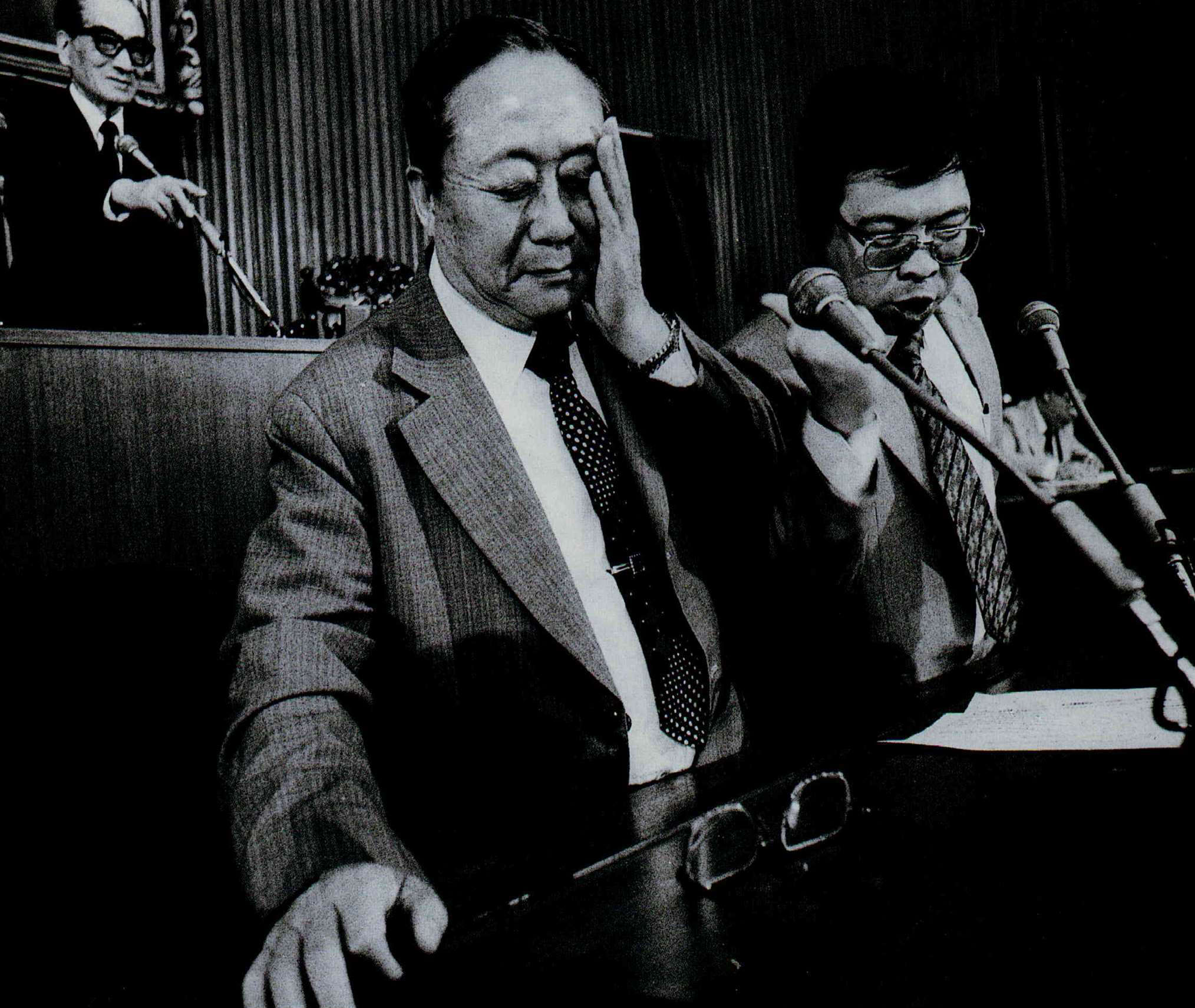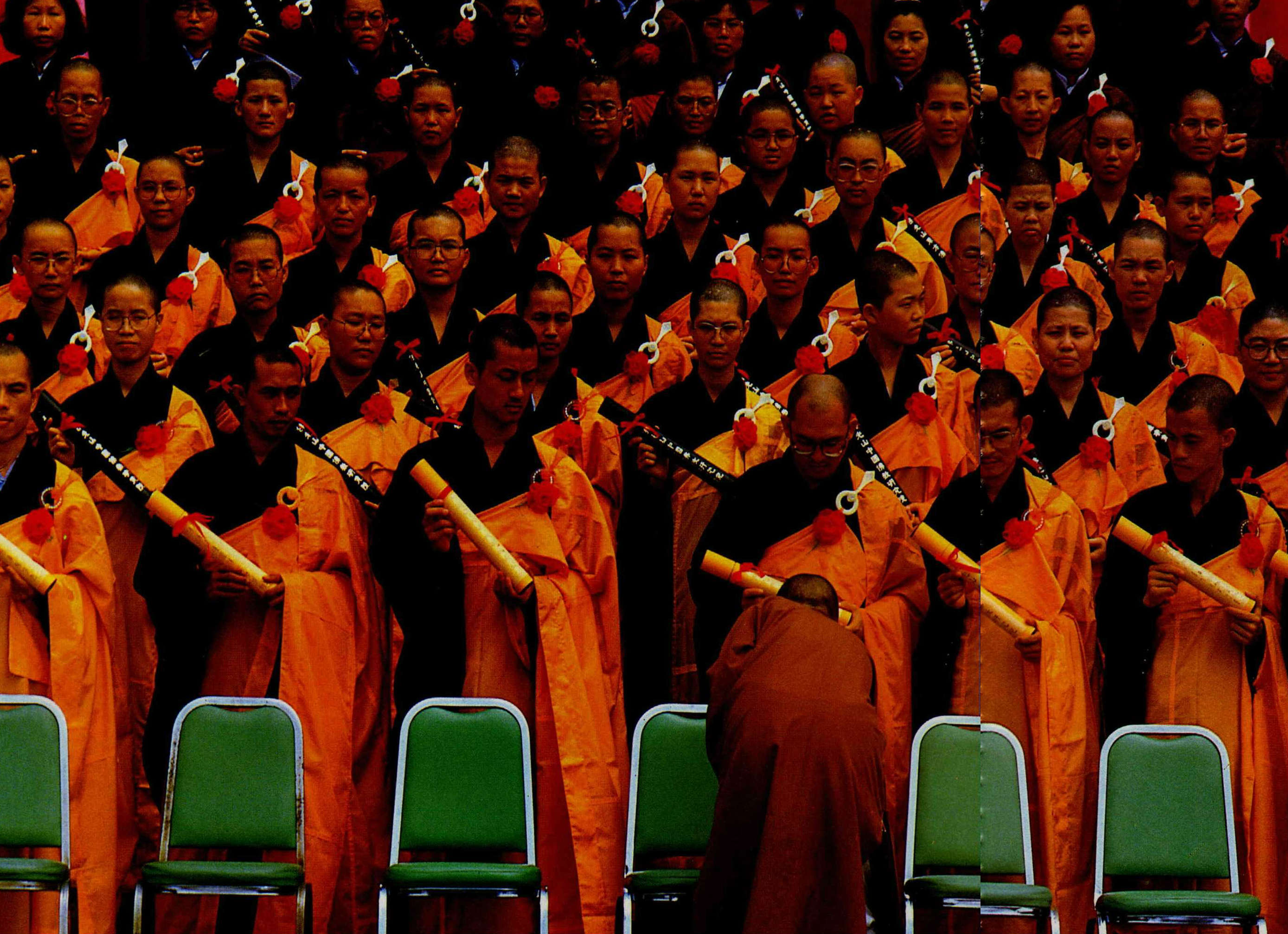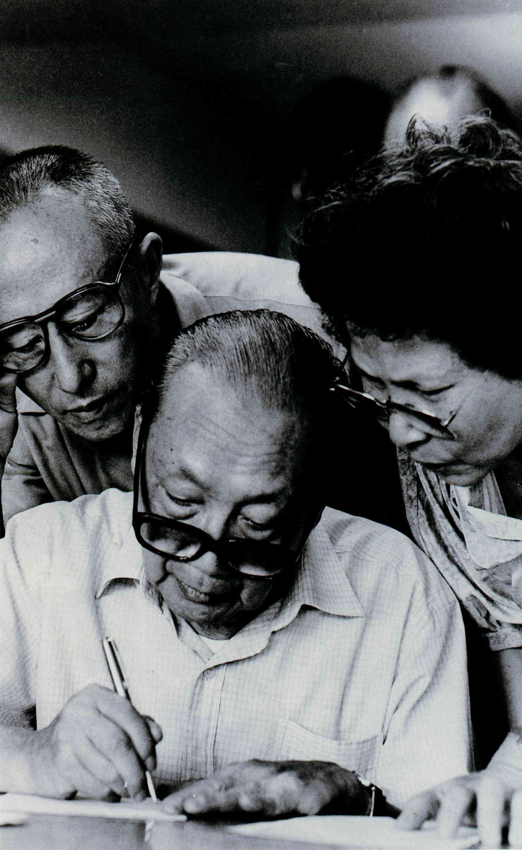 七六年新聞光影 文‧陳雅玲 1987 12月 EN 分享: 國慶閱兵大典上,蔣總統抬頭檢視空軍,參謀總長郝柏村於一旁解說。/10月11日/湖口/中國時報姚琢奇。 今年我國行政院長俞國華首度訪問新加坡,與該國總理李光耀晤談甚歡。/6月9日/新加坡/新聞局李培徽。 身為一本畫報雜誌,光華一直以拍攝好的新聞圖片為目標;這個月,我們更嘗試以圖片來回顧今年的重大新聞事件,並將國內的新聞攝影介紹給讀者。經過三個月的策劃,在近千張的應徵作品中,我們精挑了這五十張分別代表政治、經濟、社會、體育、環保、醫藥、教育等範疇的佳作,與您分享。 新聞局長邵玉銘向記者們宣佈:中華民國正式解嚴。/7月14日/台北市/光華雜誌張良綱。在國防部舉辦的記者會上,反共義士劉志遠展示他隨身攜帶的手槍。/11月19日/台北市/光華雜誌邱勝旺。大陸探親開放後,思鄉情切的民眾紛紛趕赴紅十字會填申請表。/10月24日/台北市/中國時報李衛民。贊成與反對解嚴後制訂國安法的人,於立法院前相持不下。警察人員在中間堵成一道人牆,以免雙方發生衝突。/6月12日/台北市/楊永智立法院裏立委朱高正搶著發言;他口沫橫飛,立委張鴻學只得以手「擋雨」。/11月6日/台北市/聯合報林建榮。立法院舉行經費稽核委員會委員選舉,資深立委吉佑民由助理扶持前來投票。/5月1日/台北市/聯合報陳曙光。中華成棒奪得奧運代表權的慶功宴上,棒協理事長唐盼盼帶頭以冠軍杯喝酒慶祝。/8月31日/日本東京/時報週刊吳恭銘。今年十月剛滿十四歲的王思婷,是我國最被看好的網壇明星。/4月11日/台北市/民生報林明源。朱志清是國內今年剛崛起的籃壇新秀,在美國金山明星隊來台的友誼賽上,他被「卡位」了。/10月21日/台北市/民生報林明源。在中、韓、菲青年籃賽中,鄭志龍成為我國籃球史上第一個拉破籃板的人。/1月9日/高雄市/時報週刊吳恭銘。大專杯橄欖球賽上,成大橄欖球隊長劉俊寬在意外中被踢成植物人,後來不幸去世。/4月30日/台北市/中國時報李衛民。票據法刑責取消後,受刑人終於可以回家享受天倫。/7月1日/桃園龜山監獄/經濟日報張義宮。在「號子」裏,投資人緊張地觀看電腦螢幕,搶著買進賣出。/10月16日/台北鼎康證券行/光華雜誌邱勝旺。由於所生產的鋁箔包飲料被歹徒勒索下毒,統一企業為維護商譽及保障消費者,將全省七十二萬包鋁箔包飲料全部收回銷毀。/10月24日/台南縣/光華雜誌張良綱。洋菸開放進口後,國內香菸市場一時競爭激烈。經銷商為攻佔市場,經常舉辦展示活動,請民眾試抽。/6月13日/高雄市/台灣新聞報李建輝。為了拆除高屏溪違法魚塭,一大早屏東縣警察即來佈陣。/9月17日/屏東縣/光華雜誌鄭元慶。雙園大橋下,大怪手即將對違法魚塭下手。/9月17日/屏東縣/路加。新店垃圾山曝光後,環保人員前來探測附近水質。/7月10日/新店市/突破雜誌黃子明。李長榮化工廠造成汙染後,附近居民都到鄰村取水飲用。/4月/新竹市/人間雜誌蔡明德。在台大醫院舉辦的記者招待會上,國內第一位換心成功的病人宋國山談笑風生。/9月17日/台北市/中國時報蕭嘉慶。一再抗議無效,當地人只得用石塊堵住李長榮大門,並紮起帳蓬「長期抗戰」。/(同左)我國第一位「面對」世人的愛滋病患者。/6月26日/台北市/中國時報蕭嘉慶。籌劃十二年,各項設備達到世界最高標準的國家戲劇院與音樂廳,已在今年十月正式開幕啟用。/8月25日/台北市/國華廣告公司李國村。九十高齡的黃君璧有感於國內「有錢人多,但愛心少」,特別義賣一百幅畫,將所得捐給老人與孤兒。在記者會上,說到孤苦無依的老人,他忍不住清淚漣漣。/10月21日/台北市/民生報游輝弘。由於「英雄本色」、「報告班長」及「倩女幽魂」的叫好叫座,今年電影界遂「三窩蜂」地趕拍英雄片、軍教片及鬼片。三圖分別是「江湖情」、「大地勇士」及「倩女幽魂」劇照。由於「英雄本色」、「報告班長」及「倩女幽魂」的叫好叫座,今年電影界遂「三窩蜂」地趕拍英雄片、軍教片及鬼片。三圖分別是「江湖情」、「大地勇士」及「倩女幽魂」劇照。由於「英雄本色」、「報告班長」及「倩女幽魂」的叫好叫座,今年電影界遂「三窩蜂」地趕拍英雄片、軍教片及鬼片。三圖分別是「江湖情」、「大地勇士」及「倩女幽魂」劇照。佛光山佛學院第一屆學生畢業典禮上,和尚正為貴賓抹拭座椅。/9月13日/高雄市/光華雜誌邱勝旺。今年台塑員工運動大會上,七十一高齡的王永慶兩肩各擔十五公斤沙包參加一百公尺賽跑。/3月29日/泰山鄉明志工專/經濟日報張義宮。大同公司火災,濃煙蔽天,消防隊員只好趴在屋頂上救火。/2月20日/台北市/光華雜誌邱勝旺。數百名六福大樓火災受困的民眾,在濃煙中沿著雲梯魚貫而下。/7月12日/台北市/中央日報林錫銘。新店溪直潭壩在琳恩颱風過後,攔下了近一百五十噸的垃圾。/10月24日/台北縣/民生報游輝弘。滿天飛舞的不是彩紙,而是被鞭炮引爆的氫氣球碎片與火光;這個意外造成人員受傷,卻在相紙上構成這幅絢麗的圖像。/10月26日/台北市/光華雜誌張良綱。大家樂賭風今年吹到了台北,為求明牌,夜來賭徒點燭看沙盤。/10月9日/台北市/光華雜誌張良綱飆車風盛,機車飾物店也跟著大發利市。/9月/台北市/中國時報林國彰。在大度路的起跑點上,玩命少年等著大旗揮開,一路衝去。/8月13日/台北市/新