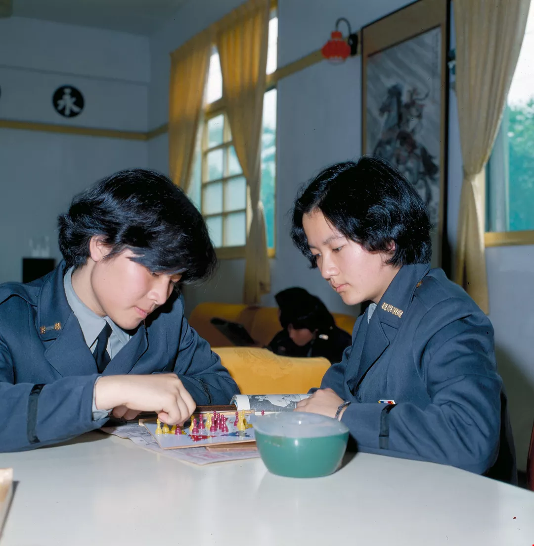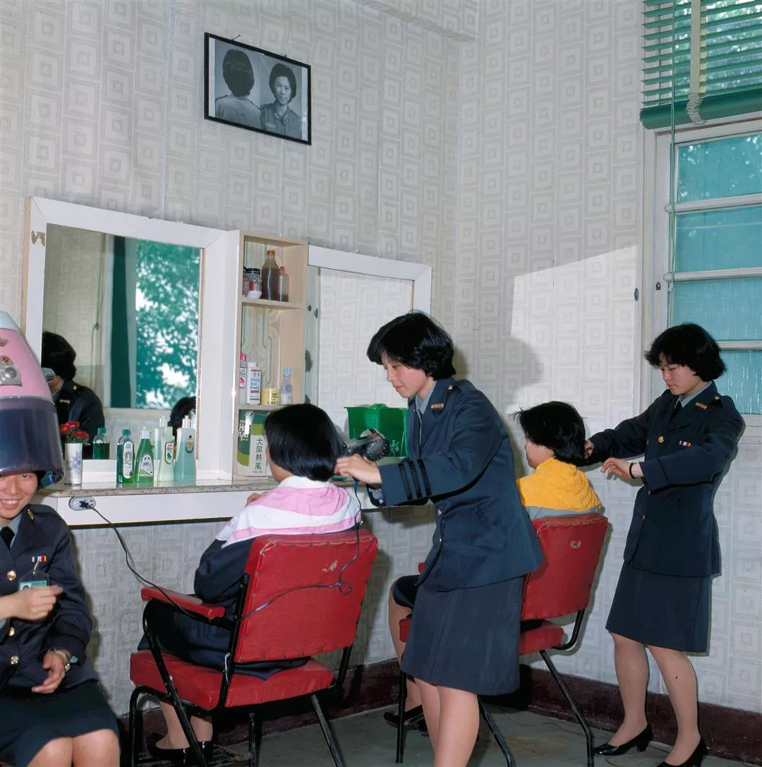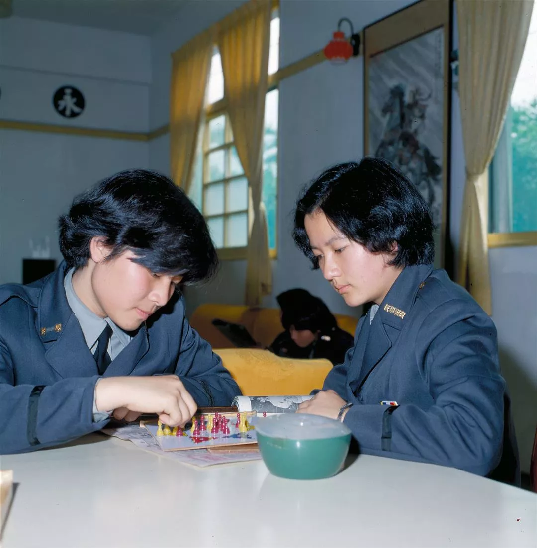 這些準女軍官們也愛漂亮,她們常在宿舍的美容室內,互相幫忙做頭髮。