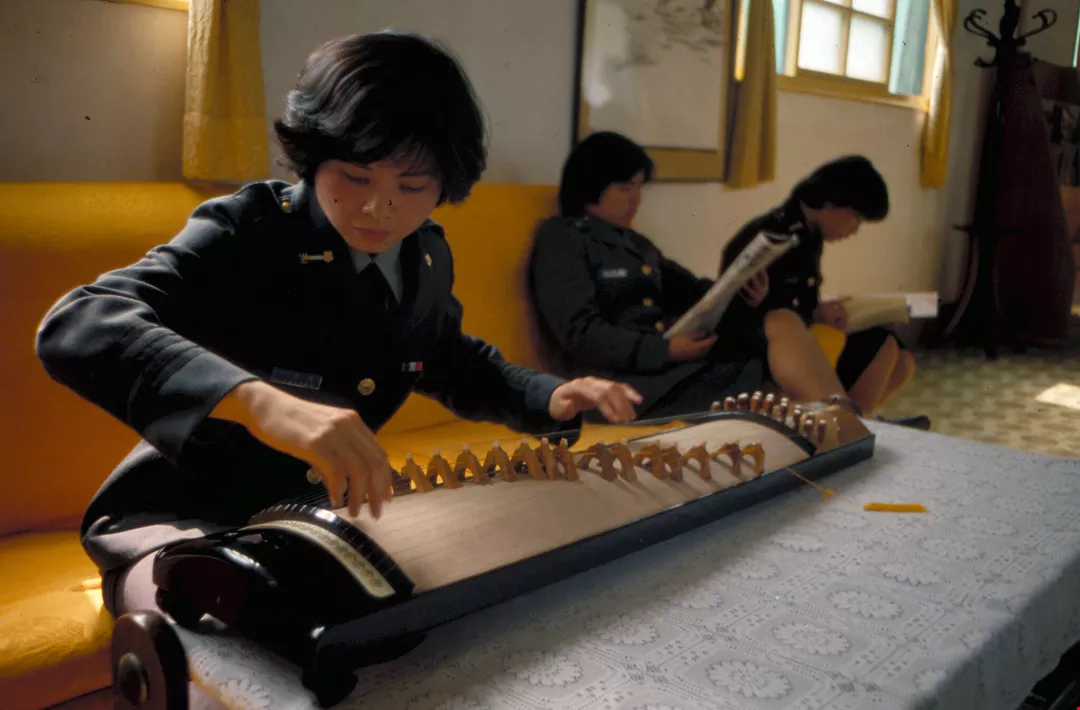 有的女學生把古箏帶到學校來,有空時彈奏一番,琴聲悠揚,可收陶養身心之效。