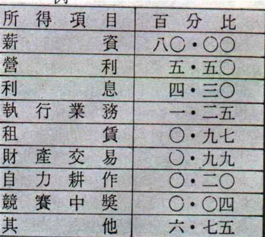 薪資所得因為就來源扣繳,資料容易掌握,不易逃漏,所以比率偏高。反之,營利所得人數少,所得高,應是累進課徵對象,但不易查核,常有逃稅情事。行政院主計處公佈六十八年營利所得佔國民所得的20%,金額達一、七八○億;然財稅資料中心統計營利所得,僅佔申報總所得的5%,金額一五○億,尚不及應申報金額的十分之一,可見逃漏情況的嚴重。