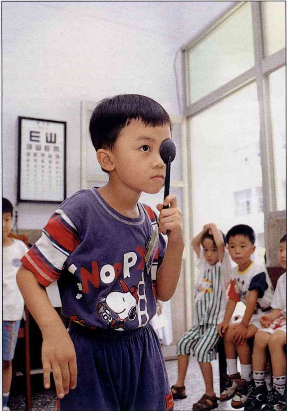 台灣兒童近視的盛行率之高,有目共睹。台大視力保健中心醫師林隆光指出,三十幾年前,台灣地區小學畢業學童近視罹患率不到百分之二十。隨著文明的腳步,兒童近視人口也與日俱增。根據衛生署去年的調查,台灣地區六年級的學童半數以上罹患近視,國中三年級的罹患率增加到七成五,高中生更高達八成五。