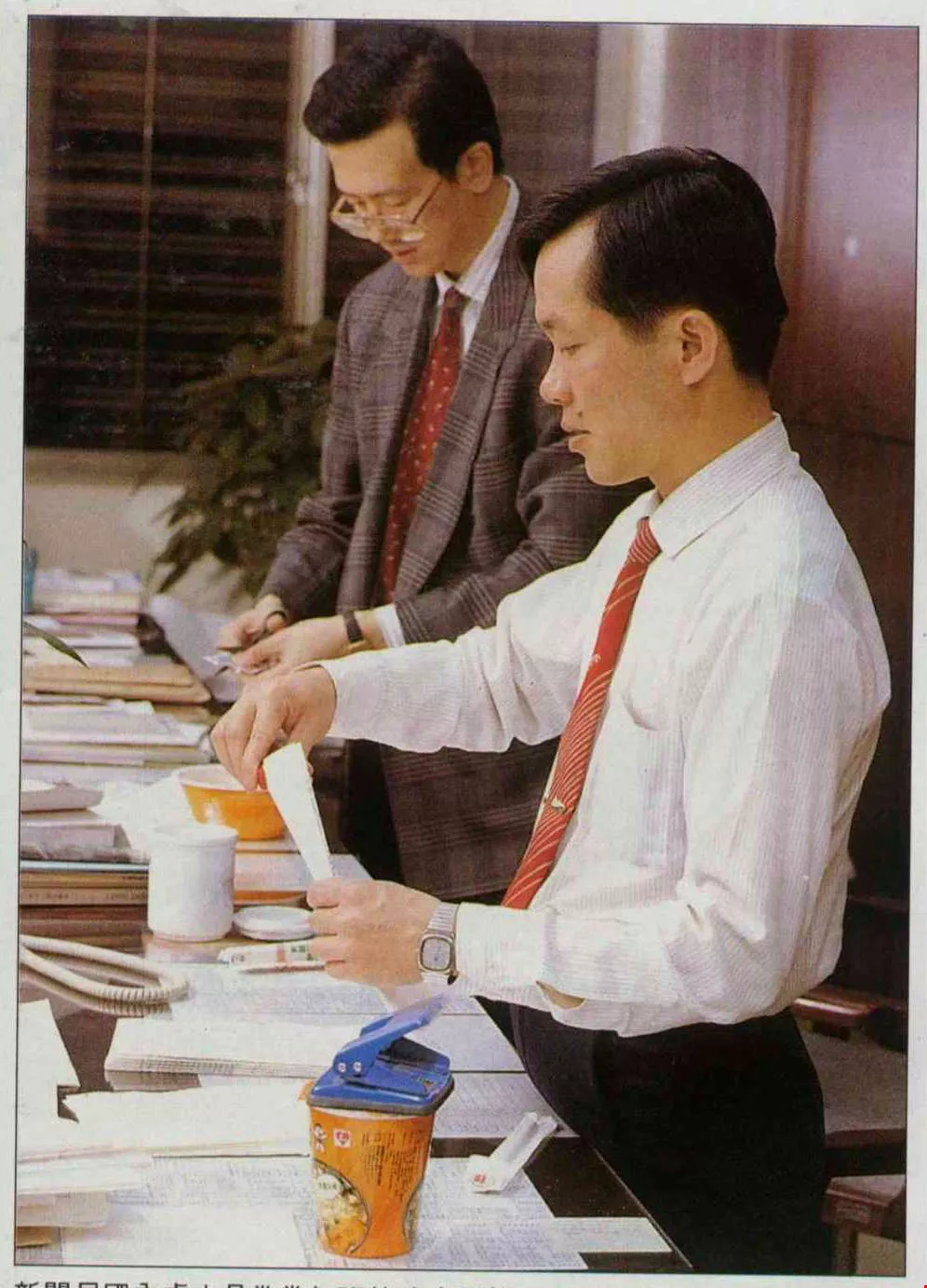 ——由部長王建煊帶頭示範,最近財政部大小官員成了標準的7-ELEVEN,早上七點開始早餐會報,晚上十點、十一點才熄燈回家。