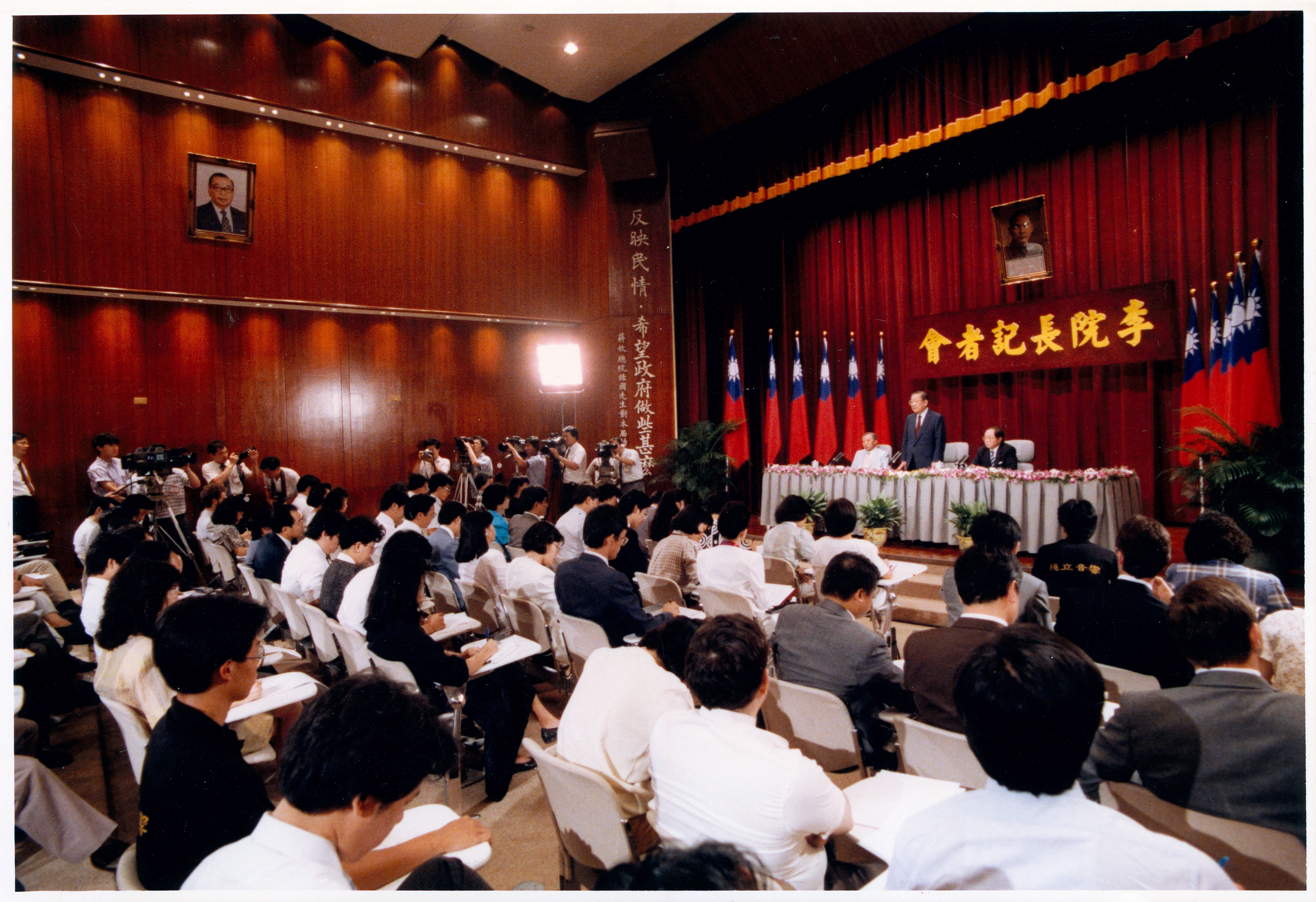 行政院長李煥在上任五個星期後,為充分與民眾溝通,即召開了首次記者招待會,以闡述其施政方針與理念。(李培徽攝)