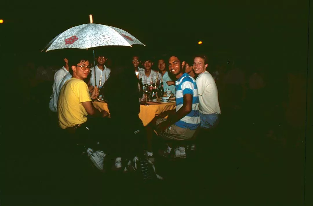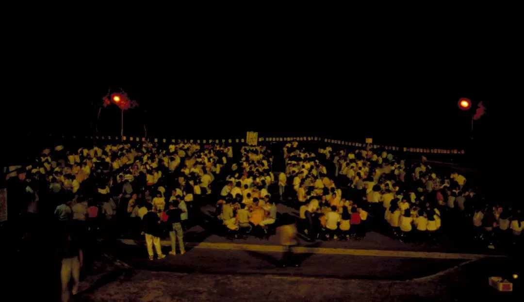 宴會進行了一半,突然下起雨來,許多人撐起雨傘,開開心心地接受了這個「來者不善」的助興。師生聯合千人宴隆重召開,這也是新亞院慶的重頭戲之一。(張良綱)