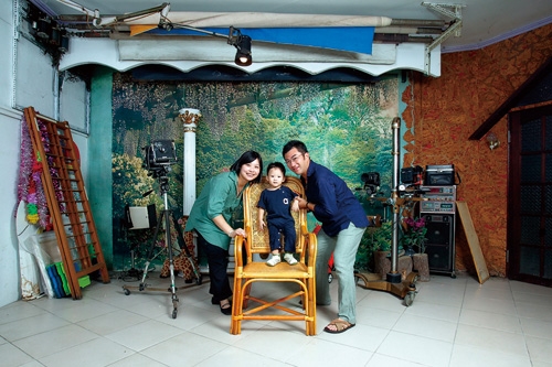 「以前覺得很LOW、很俗的東西,現在特別有感情。」從今(2009)年7月開始,陳逸宏先後造訪了花蓮百年日式老建築的「新城照相館」、已有34年歷史的「心心彩色攝影」、「東美相館」,及嘉義新港的「東洋相館」,一家3口在古董座椅、以花布為背景的攝影棚中,為自己留下懷舊意味十足的全家福照。
