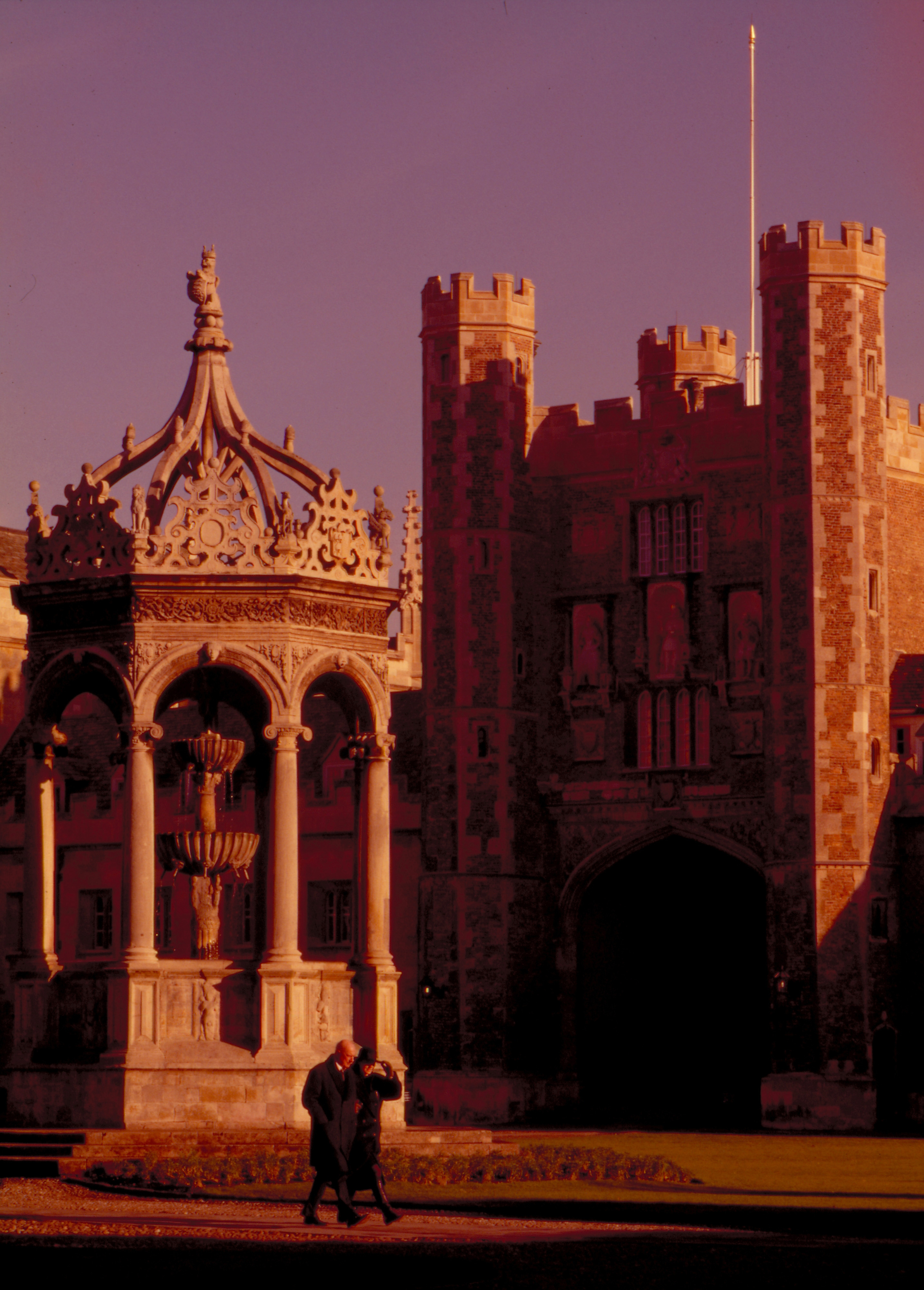 劍橋的學院經過七百多年的嬗遞,到目前總數已達卅個。它們各自獨立,有自己的院徽、院規、院產,雖同屬「劍橋」名下,實則是「邦聯」性質。而其中最著名的當屬在劍橋主街上一字排開、肅穆恢宏的古老四合院學院,包括出過物理學家牛頓的三一學院、出過名詩人渥爾華滋(W. Wordsworth)的聖約翰學院,以及皇族貴冑子弟慣居的國王學院、皇后學院等。