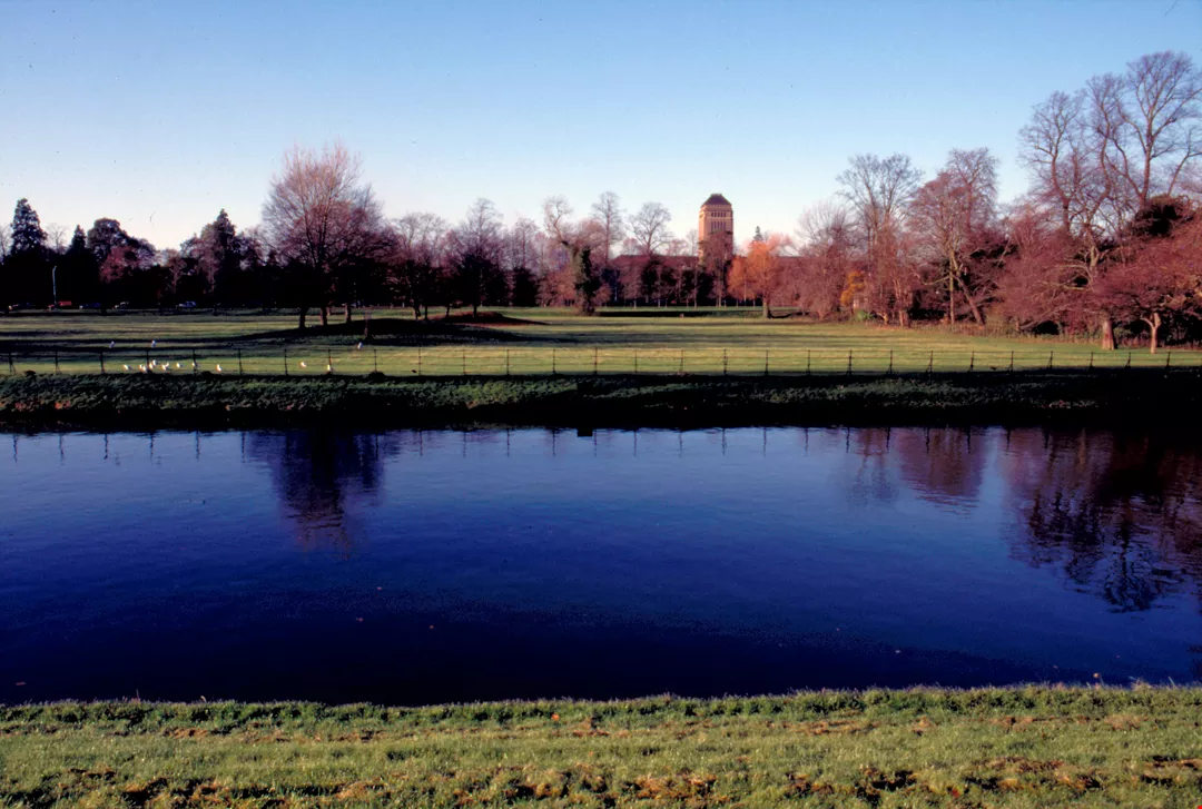 這幾個學院都創始於十三至十六世紀,地理位置的優越是它們最得天獨厚的地方:前臨大道,面對著熙來攘往的市集;走入大門內,穿過完整開闊的數「進」四合院,就來到著名的「後院」(the Backs)。這裡劍河流貫其間,河上有曲線優美的拱橋、河邊有廣袤平坦的草地,在此撐船、野餐、漫步,都是啟發靈感的美事。劍橋詩人特多,劍河是功不可沒的。