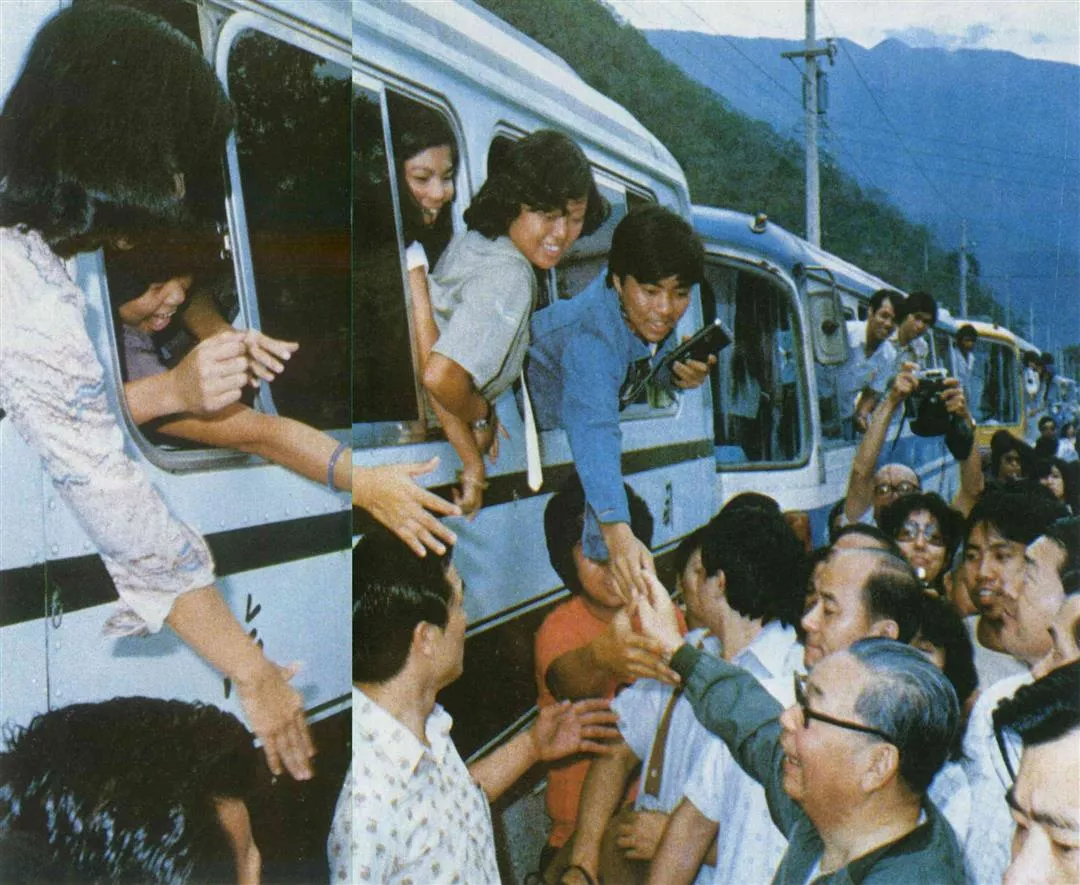 青年學生活力無窮,他們喜歡利用假日四處遊覽,爬山涉水亦不辭辛苦。經國先生不僅經常到各地訪問,他也很愛親近大自然,常順便遊覽。山水之間大家歡然相遇,合影一照留作紀念。