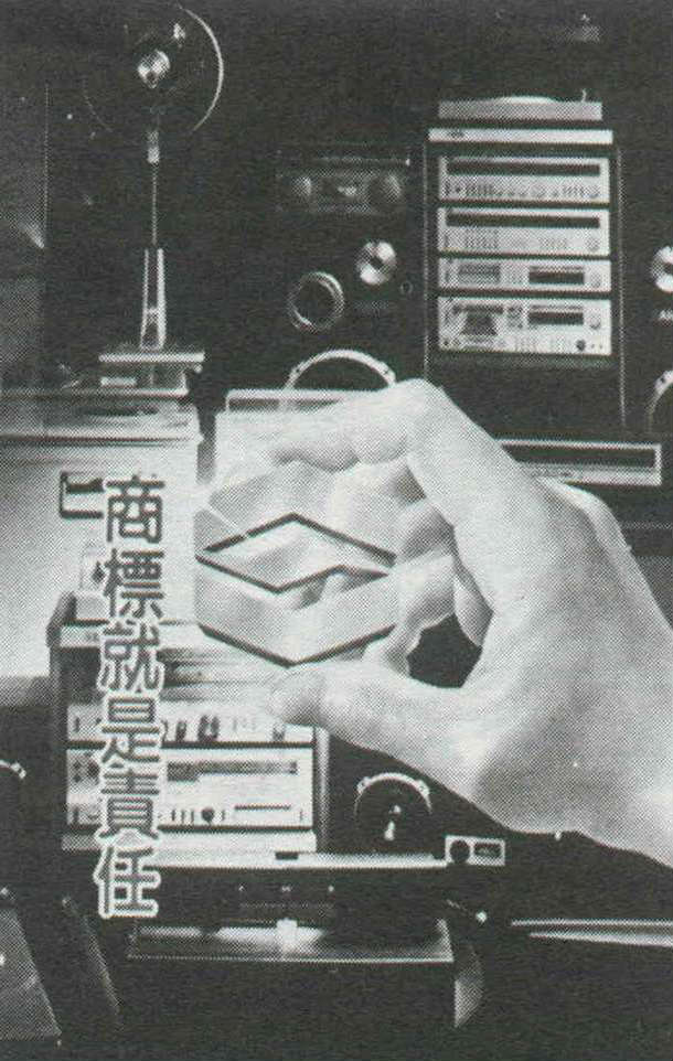 右圖:陳茂榜經營企業最重視信譽,因為唯有著重信譽,才能提高市場佔有率,企業也才有長遠的前途。最近聲寶公司內到處張貼「商標就是責任」海報,這也是該公司目前積極提倡的工作重點。(艾瑟)